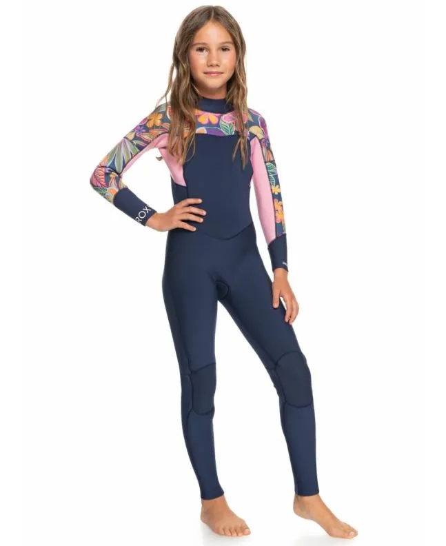 Neopreno Roxy Girl Swell Series 4/3mm Back Zip Azul Marino Floral (8-16 años)