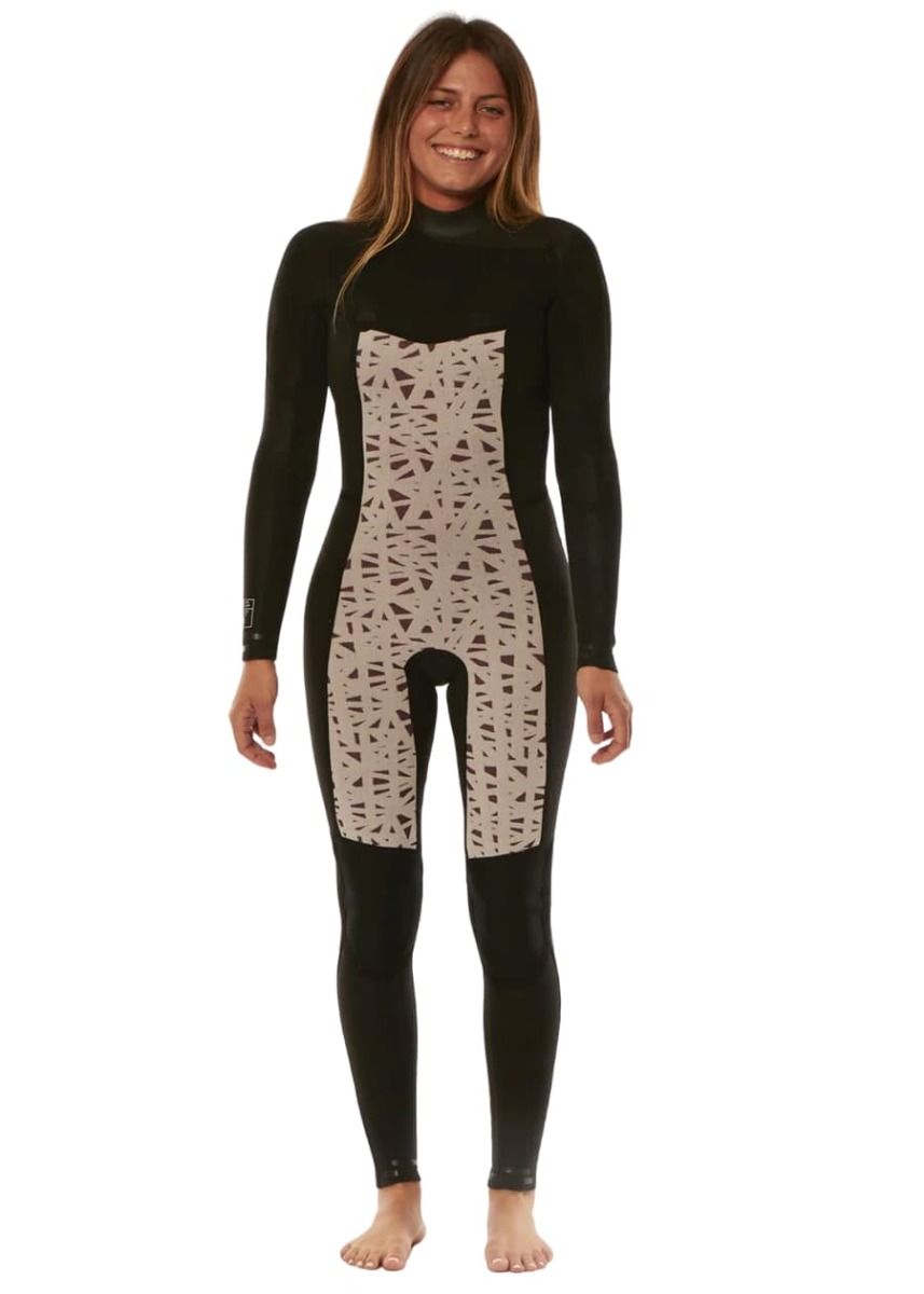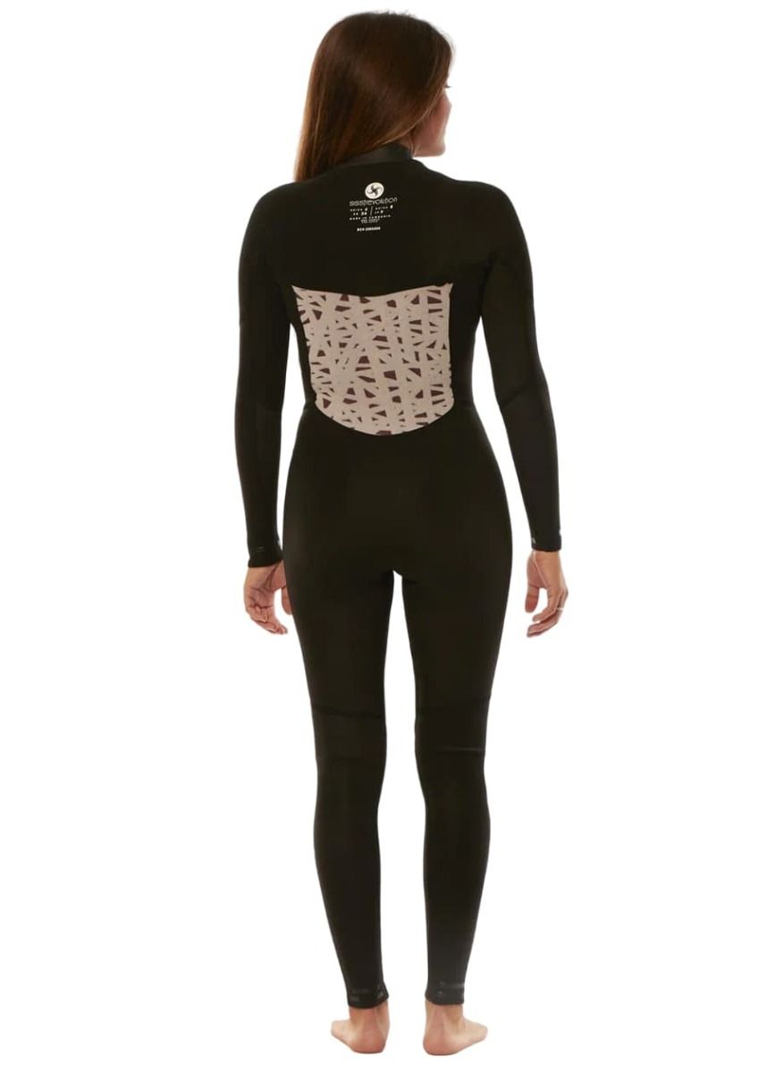 El traje de surf con cremallera en el pecho para mujer 7 Seas 5/4mm Full Chest Zip en negro (Solid Black) de Sisstrevolution está confeccionado con neopreno superelástico de base calcárea japonesa (limestone) más ligero, cálido, suave, elástico, fácil de poner y quitar, y que te permite más libertad de movimientos.