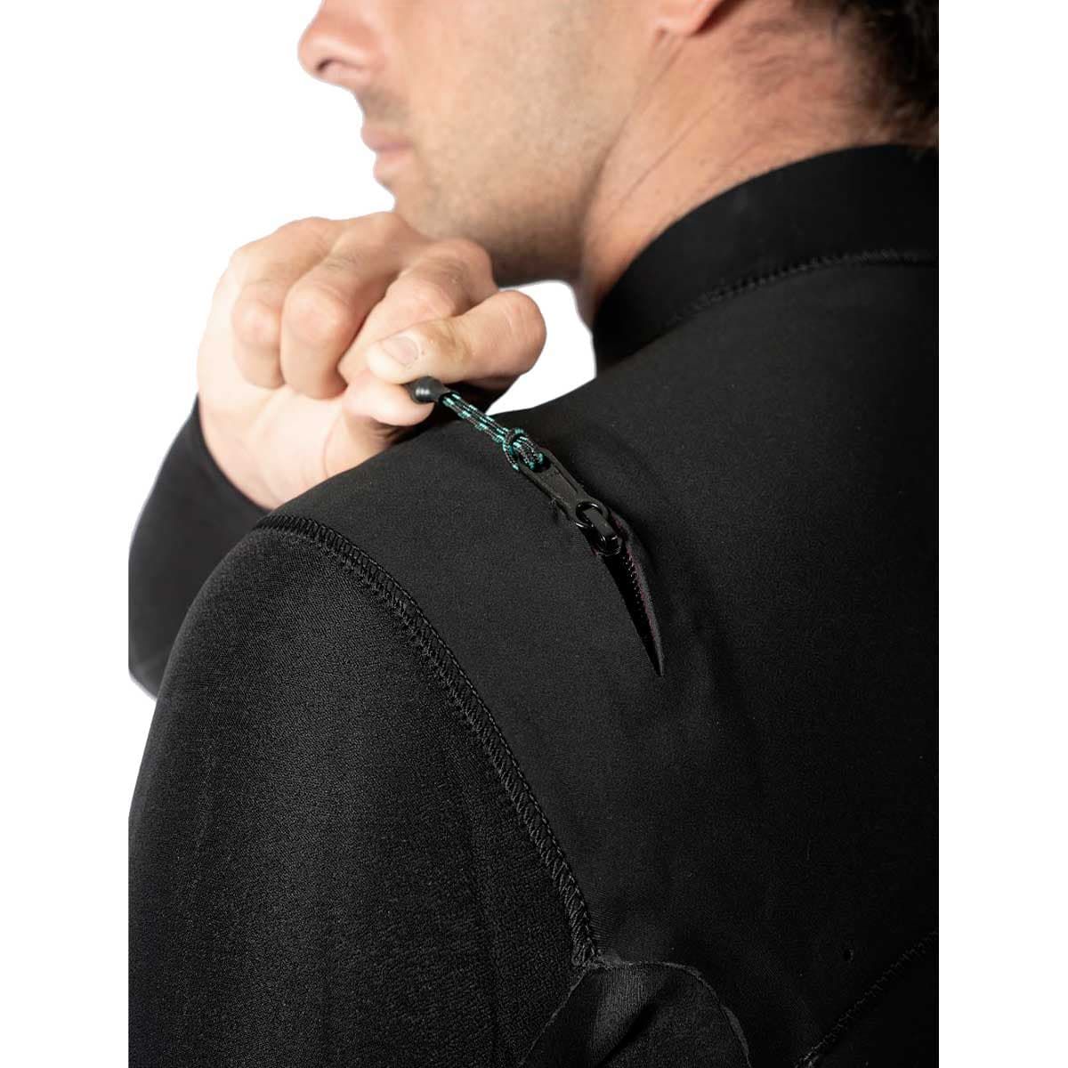 El neopreno de surf para hombre New Seas 4-3 V-Zip Wetsuit en negro (Black) de Vissla presenta un innovador sistema de cremallera en forma de V para una libertad de movimientos y comodidad inigualable. Este nuevo sistema de cremallera Vissla aumenta el rango de movimiento gracias a sus capas mínimas de neopreno alrededor del cuello y de los hombros, facilitando así la remada, es también mucho más fácil de poner y quitar que cualquier Chest Zip del mercado y sella completamente la entrada de agua, ya que está totalmente cerrado de hombro a hombro.