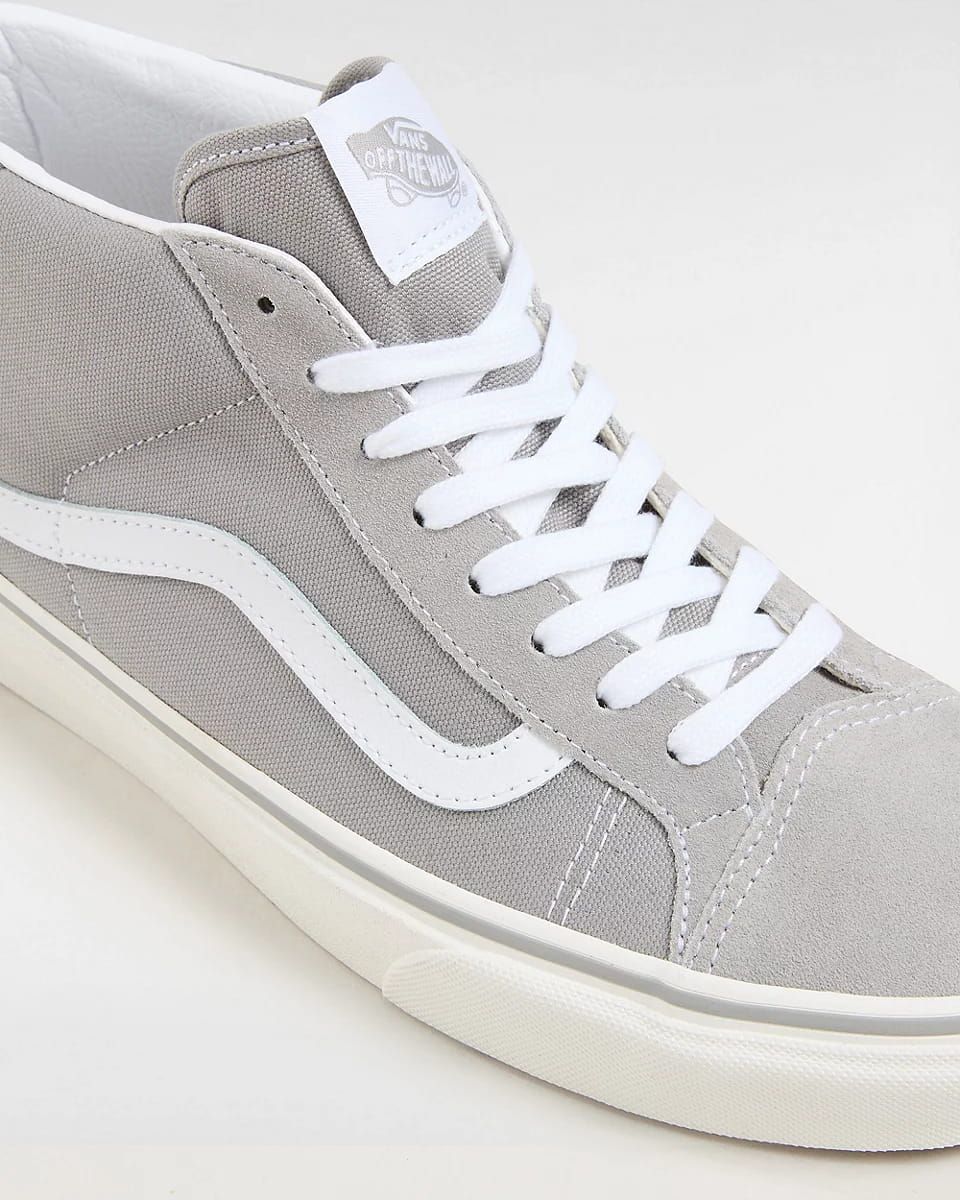 Las deportivas media caña para hombre y mujer Mid Skool 37 en color gris con la banda lateral sidestripe en blanco (Drizzle-White) de Vans están fabricadas en una combinación de ante y lona.