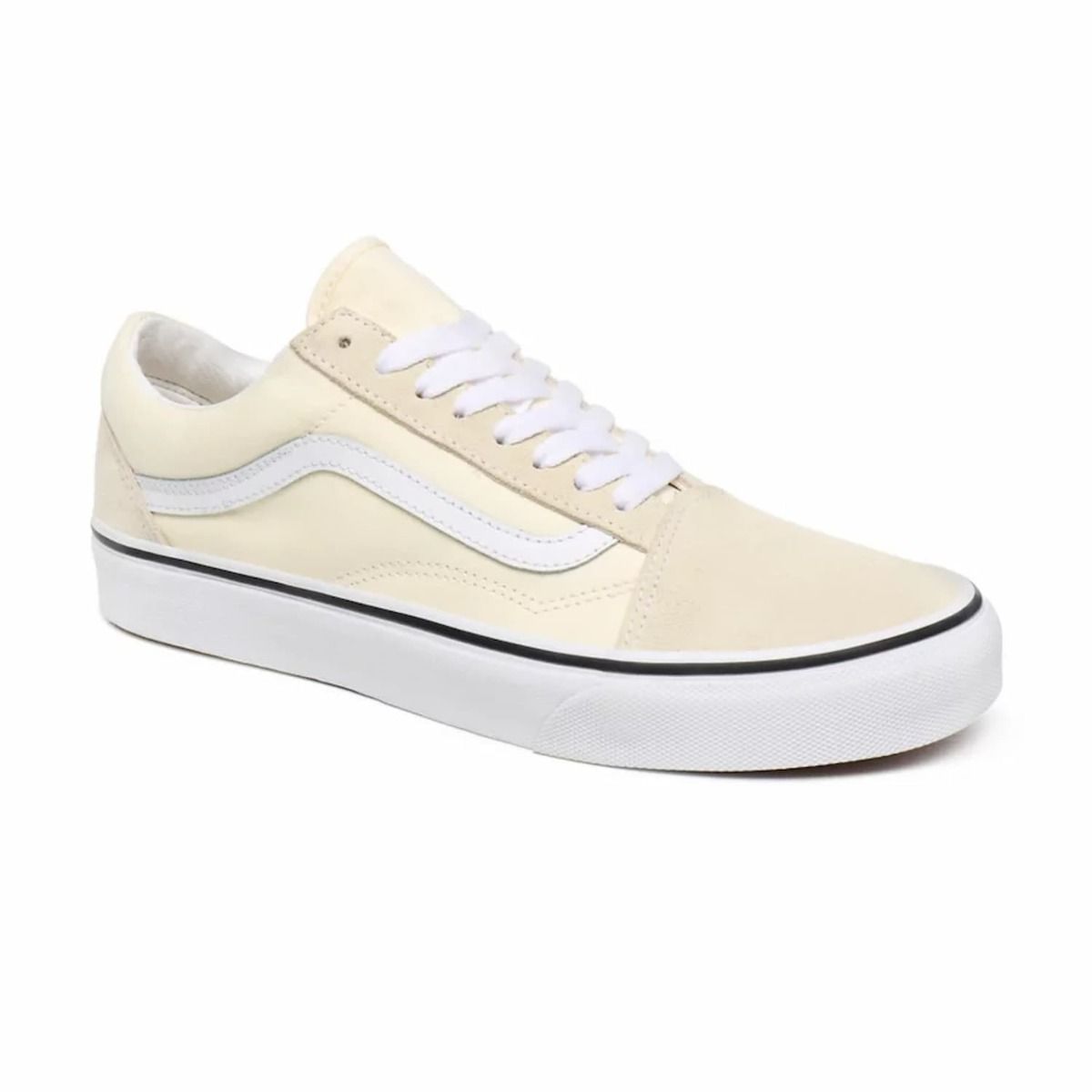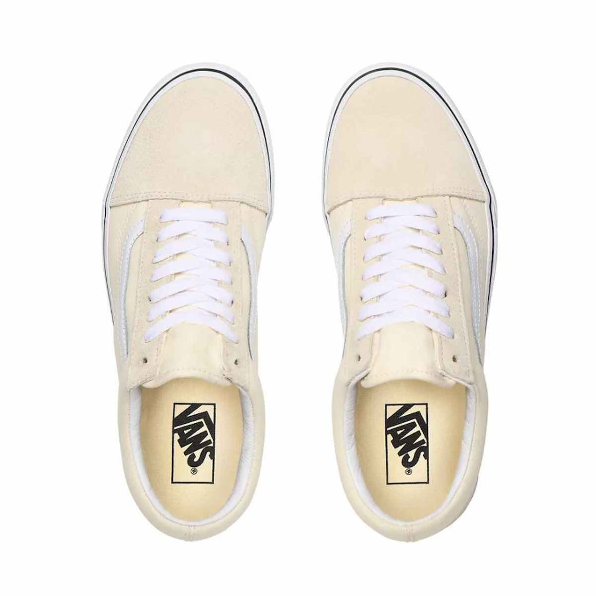 Las zapatillas Old Skool blancas (Classic White-True White) de Vans están confeccionadas con 56% ante y 44 % lona.