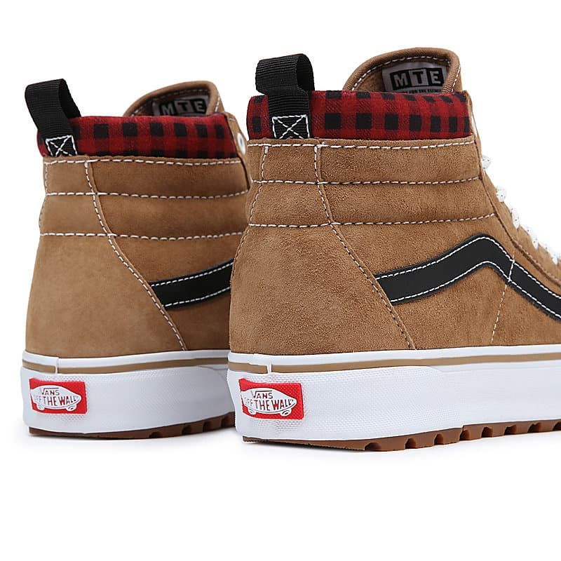 Las Zapatillas para hombre y mujer SK8-Hi MTE-1 Plaid en marrón con la banda lateral en negro (Brown-Black) de Vans han sido confeccionadas con cuero, tela y caucho.