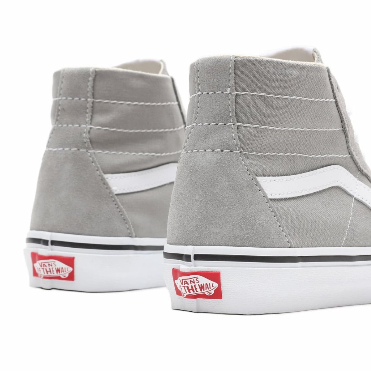 Las zapatillas de caña alta SK8-HI Tapered de Vans en color gris y la banda lateral Sidestripe en blanco (Drizzle/True White) han sido fabricadas con tejido de ante y lona.