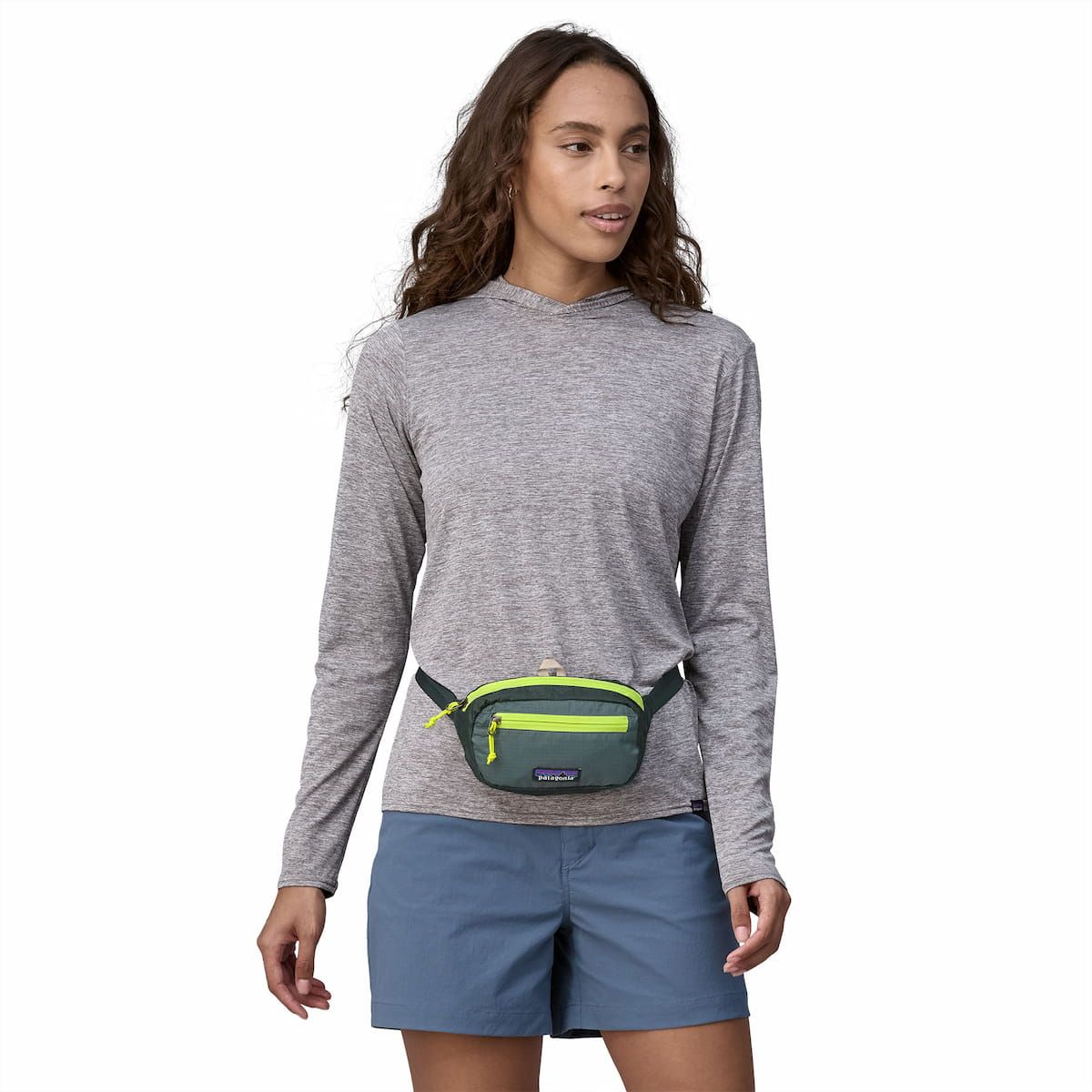 La riñonera para hombre y mujer Ultralight Black Hole® Mini Hip Pack 1 Litro en tono verde (Nouveau Green) de Patagonia está confeccionada con tejido ligero ripstop de nailon 100% reciclado resistente a la intemperie y fabricada con Certificado de Comercio Justo (Fair Trade Certified™).