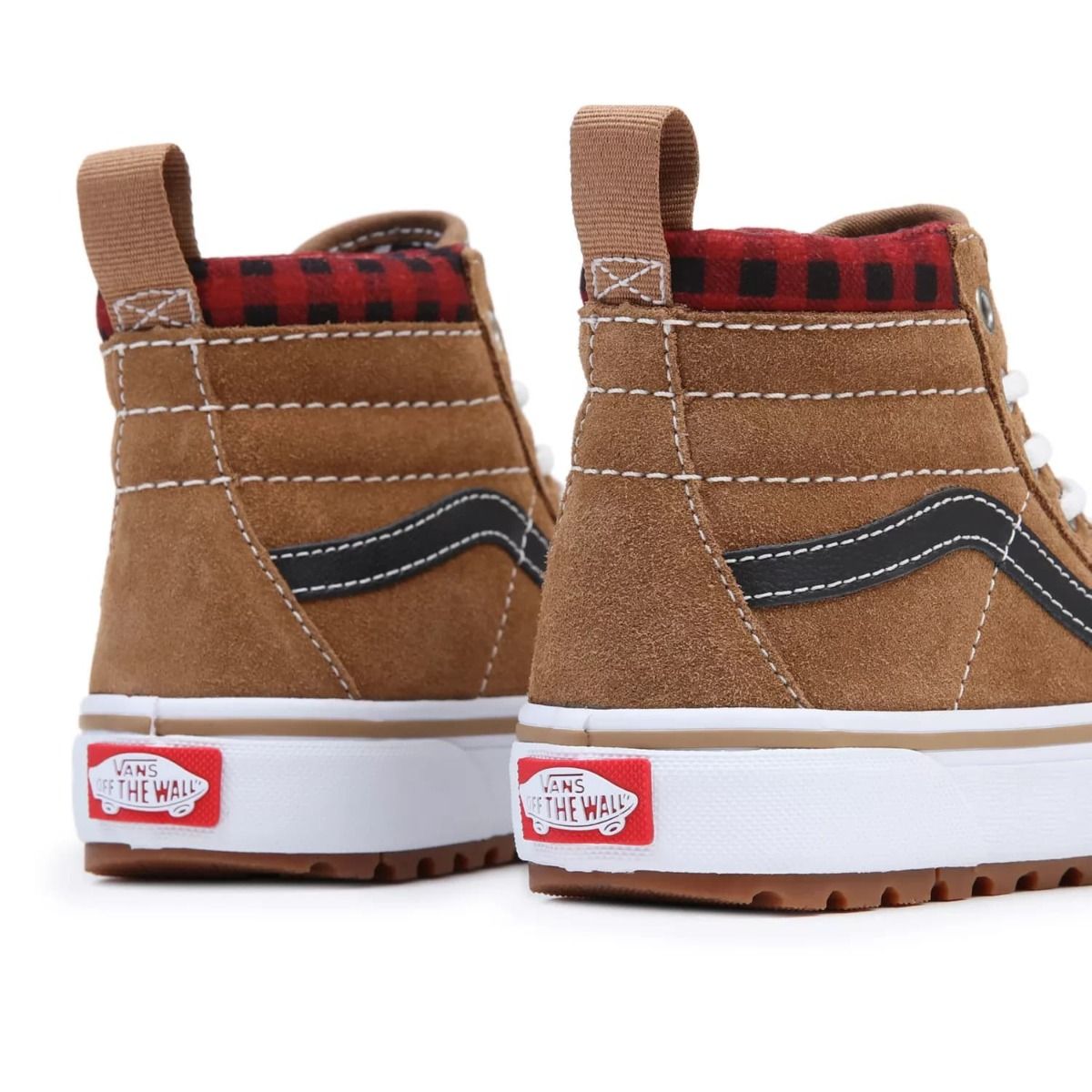 Las Zapatillas UY SK8-Hi MTE-1 Plaid marrones tienen una etiqueta de garantía Vans® cosida en la lengüeta.