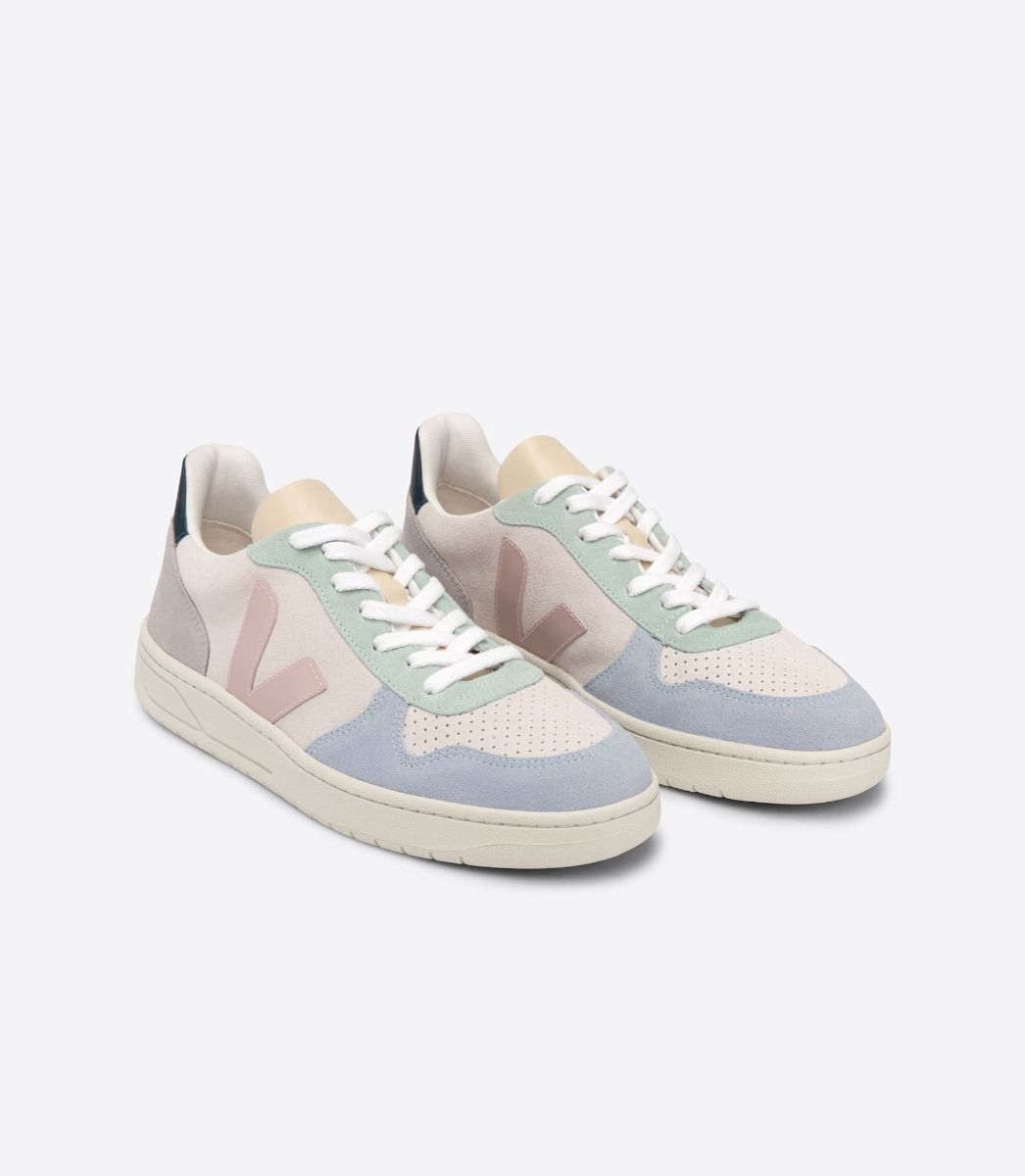 Las zapatillas para mujer V-10 Suede Multico Natural Babe de Veja han sido elaboradas en su totalidad con materiales ecológicos y sostenibles.