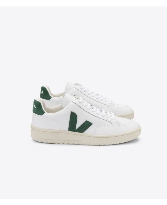 Zapatillas Veja V-12 blancas con detalles en verde y suela de goma blanca Unisex | Leather White Cyprus
