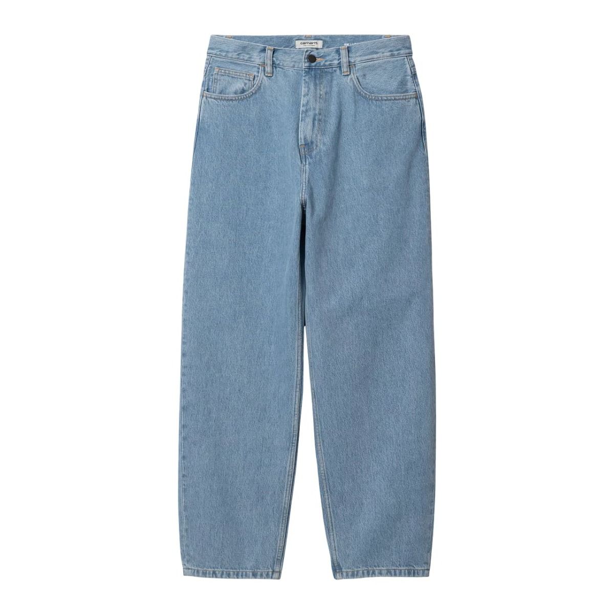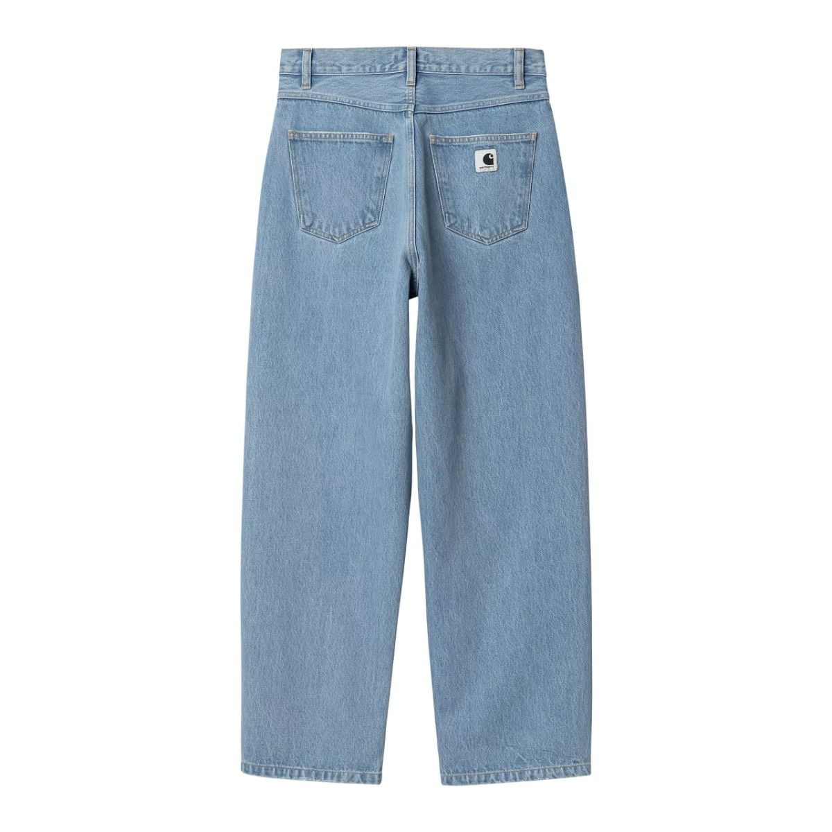 Estos jeans para mujer de ajuste holgado y talle regular cuentan con tejido denim sometido a lavado y blanqueado a la piedra para un aspecto más claro, bragueta con cremallera, 5 bolsillos, canesú trasero y una etiqueta cuadrada con el logo de Carhartt cosida en el bolsillo posterior derecho.