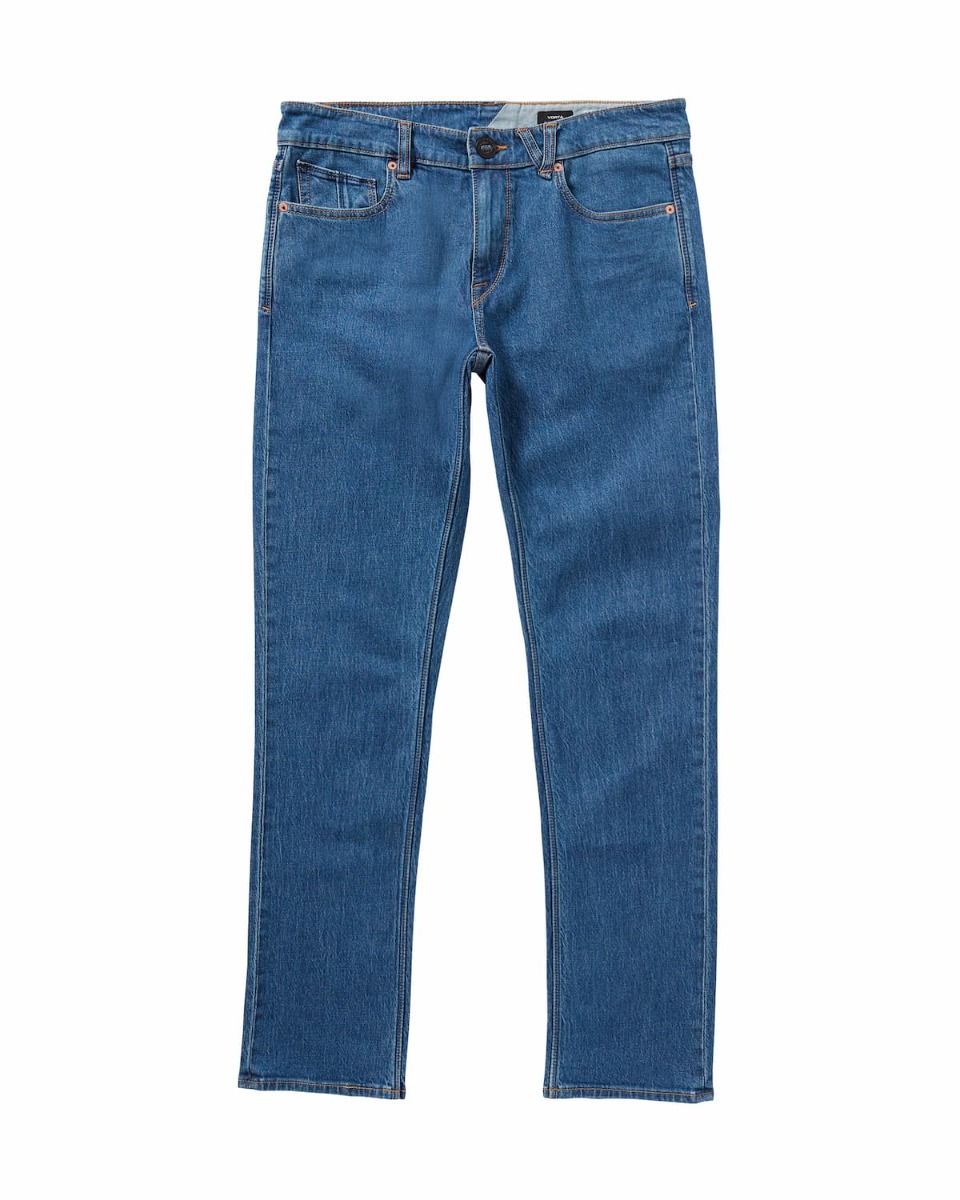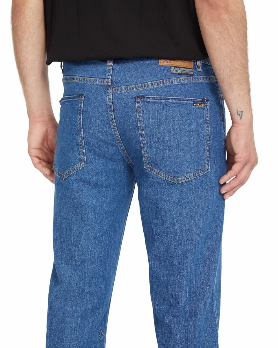 Vaqueros Volcom Solver Denim azul para hombre ajuste moderno, cómodos y sostenibles con algodón reciclado.