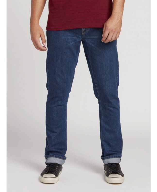 Estos vaqueros para hombre de corte slim, pernera recta y tiro normal, cuentan con una abertura de pernera 38 cm (15"), tejido denim overdyed blanqueado y los detalles característicos de Volcom Brand Jeans.