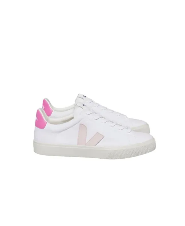 Zapatillas Veganas Veja Campo Canvas en color blanco y rosa Unisex | White Petale Sari