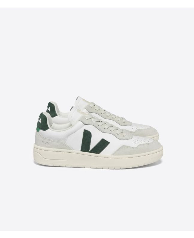Zapatillas Veja V-90 Leather en color blanco y verde Unisex | White Cyprus