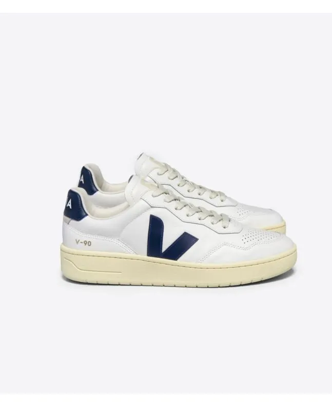Zapatillas Veja V-90 Leather en color blanco y azul marino Unisex | White Nautico