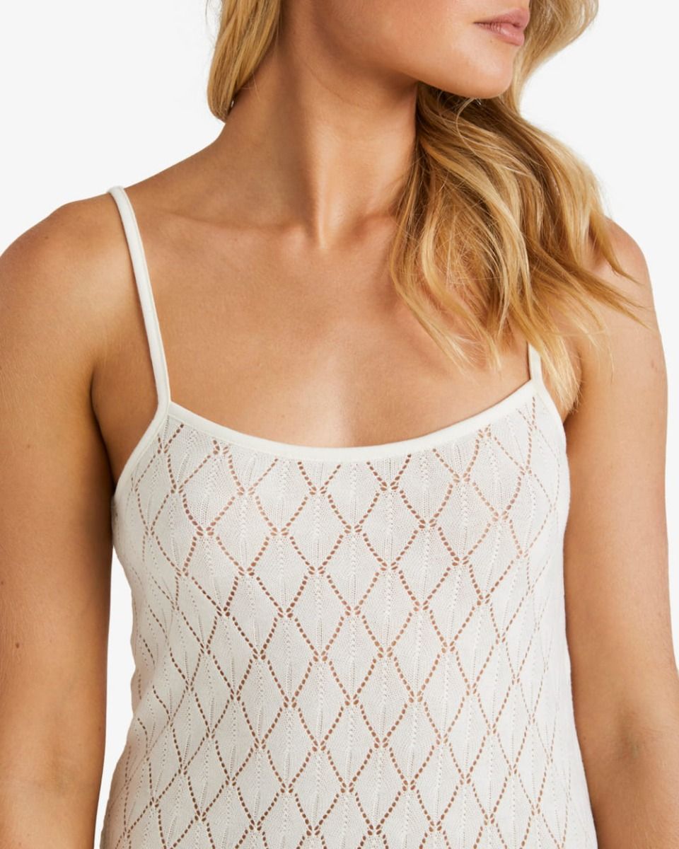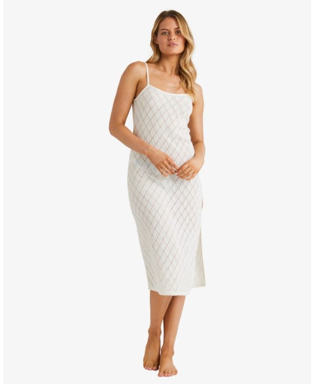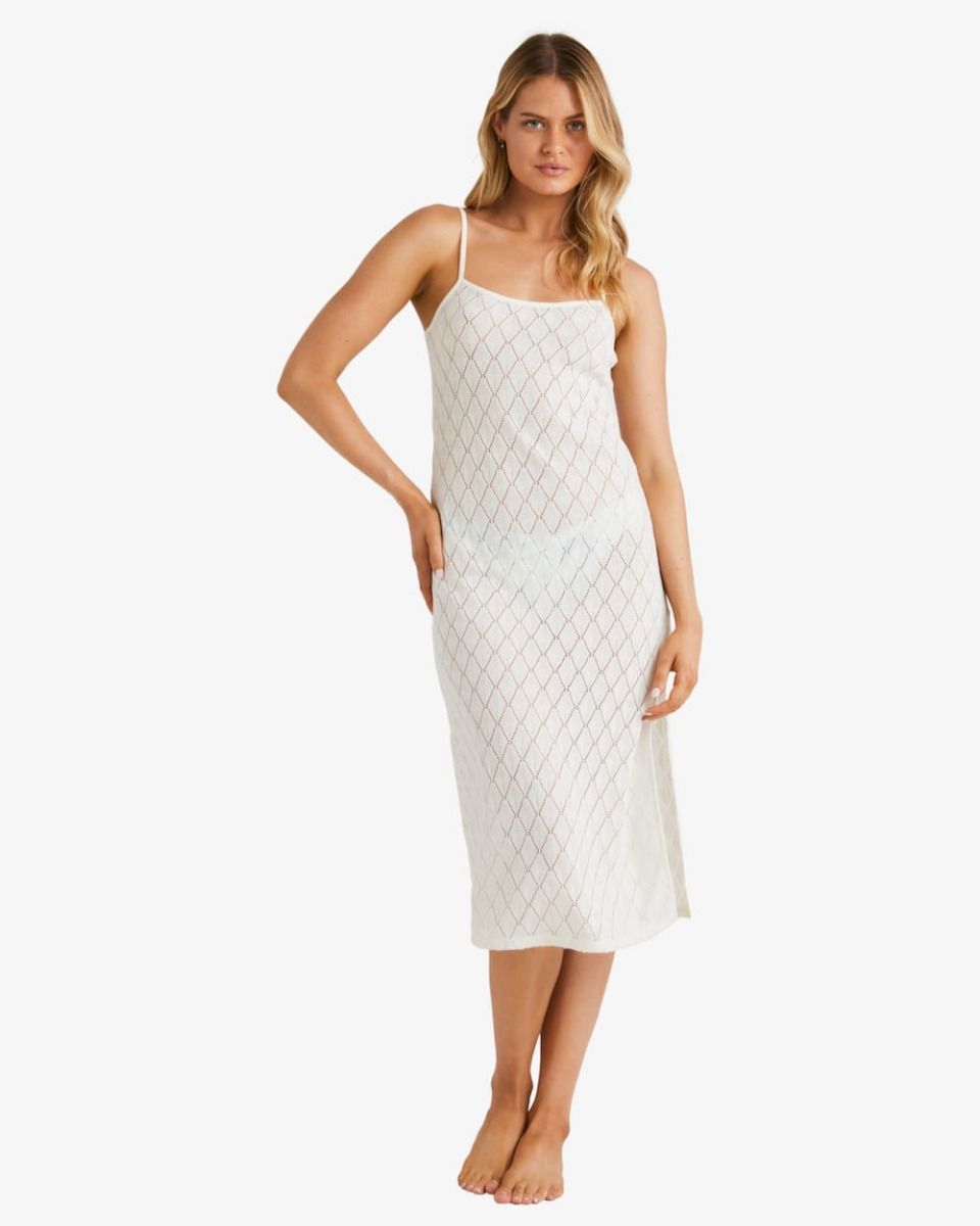 El vestido de playa para mujer Day Dream Midi Dress Blanco (Salt Crystal) de Billabong está confeccionado con tejido de punto abierto de ganchillo en mezcla de 75% poliéster y 25% algodón.
