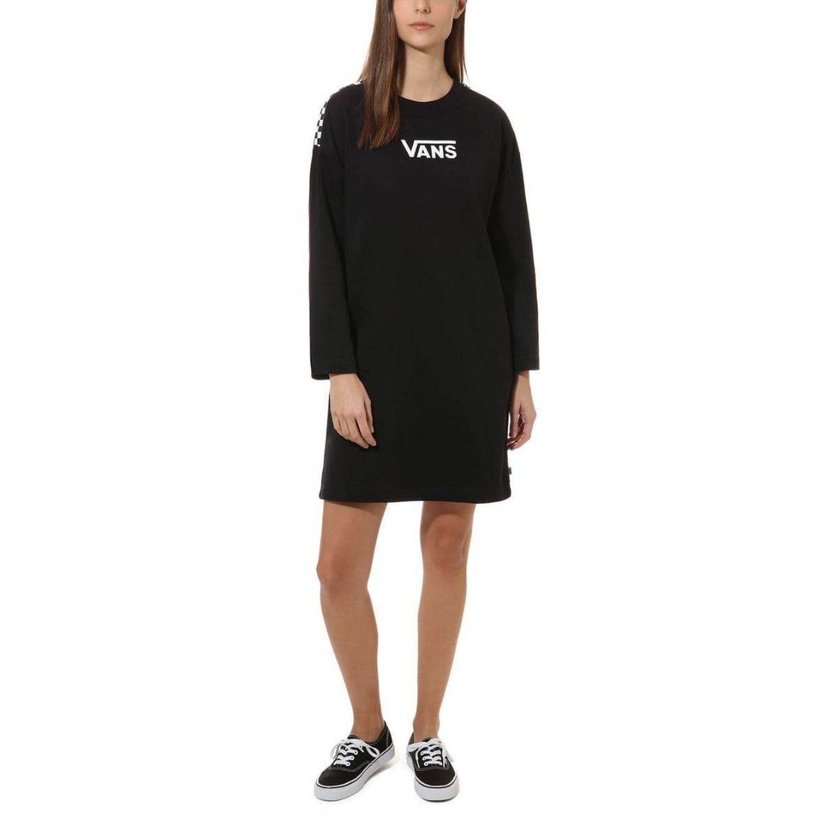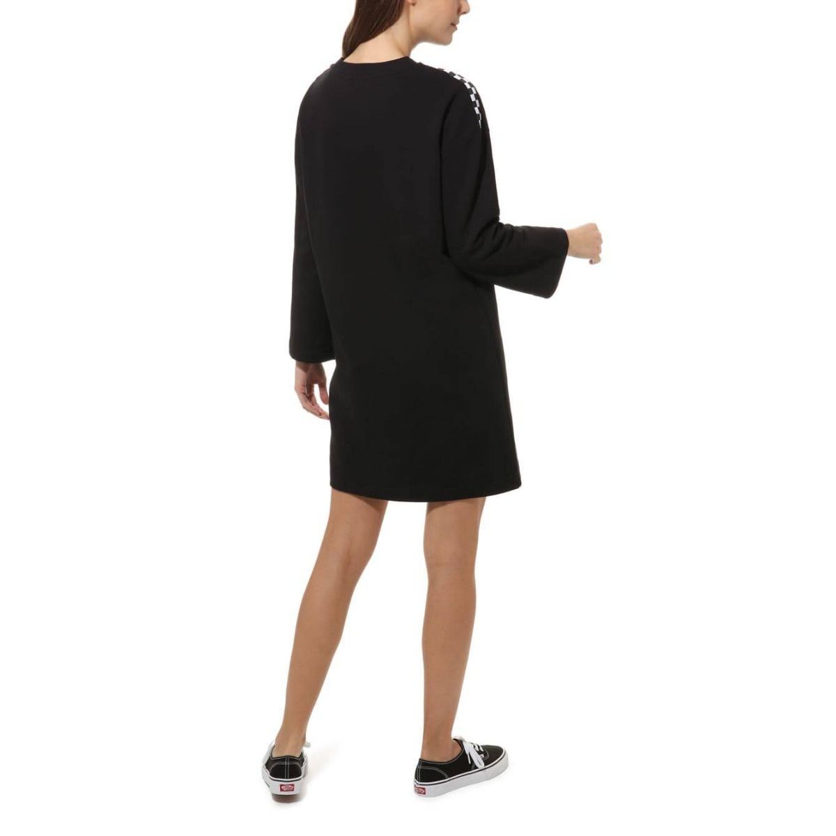 Este vestido con hombros caídos y mangas acampanadas cuenta con una cinta Checkerboard en los hombros y el logotipo de Vans en la parte frontal.