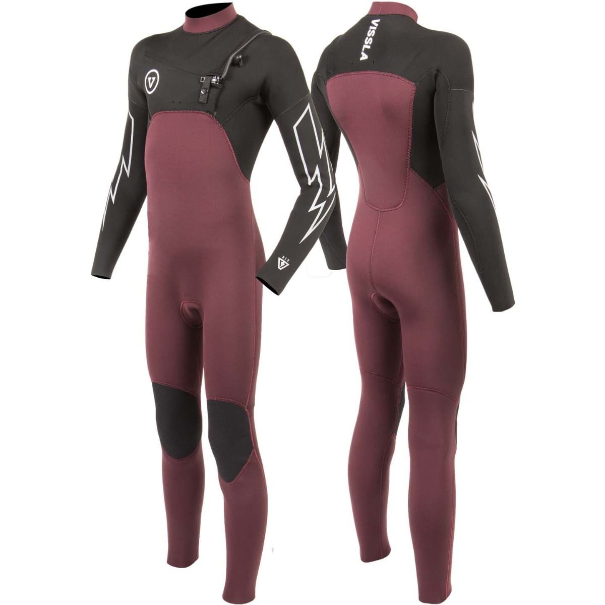 El traje de surf con cremallera en el pecho para chico Seven Seas Boys 4/3mm Bolt en granate (Wine) de Vissla está confeccionado con neopreno superelástico de base calcárea japonesa.