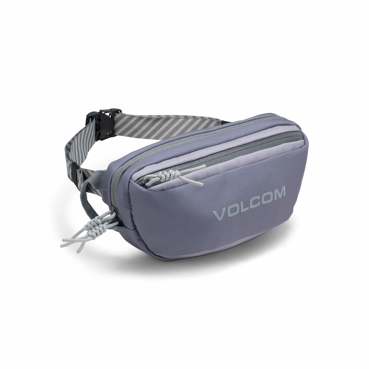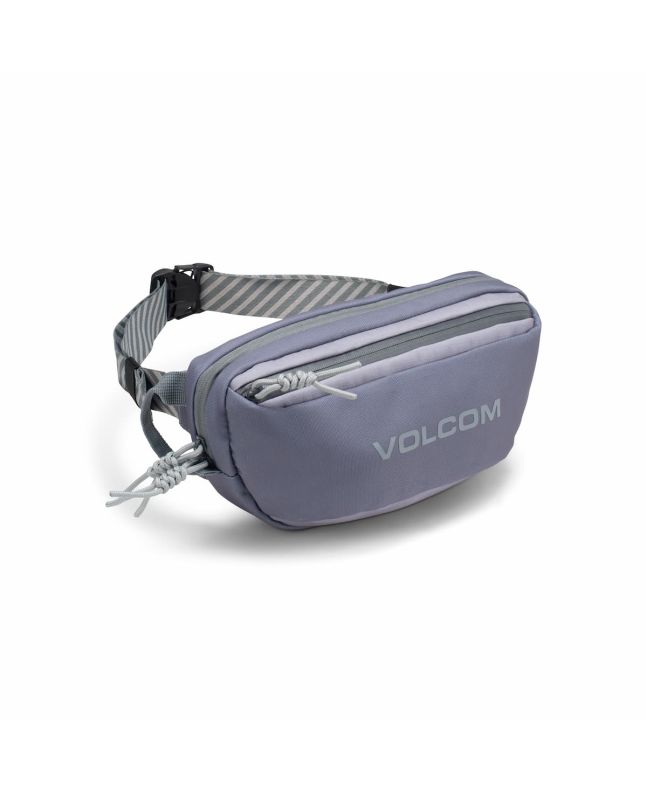 Este práctico mini bolso de cadera gris cuenta dos compartimentos con cierre de cremallera, cinturón ajustable de 1", hebilla lateral, tiradores de cremallera con cordón, asa de transporte lateral y serigrafiado Volcom en el frontal.