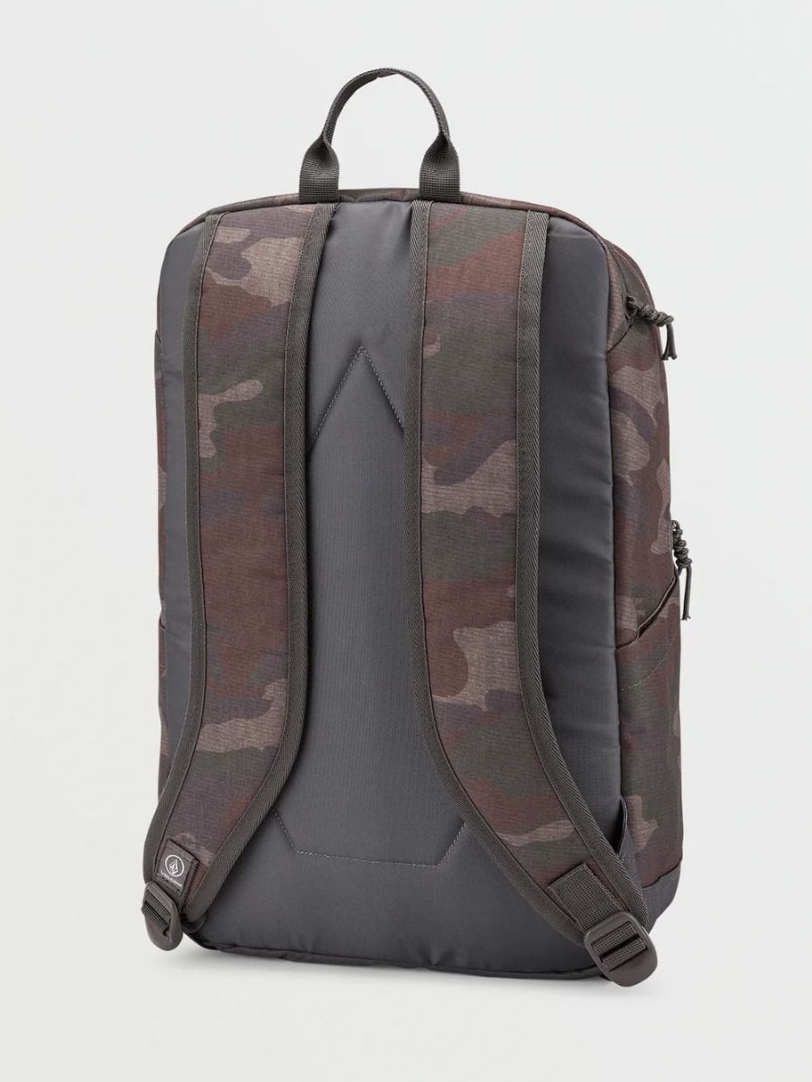 Esta mochila cuenta con un amplio compartimento principal con cierre de cremallera, un compartimento para portátiles de hasta 18" con cremallera y forro de punto, un compartimento con cremallera en la parte inferior delantera con llavero y soporte para accesorios en su interior, bolsillos laterales con ajuste de compresión, correas ergonómicas con forro de malla, asa superior, panel posterior acolchado con el logo Stone, paneles exteriores en contraste Op Art, el logotipo de Volcom serigrafiado en el frontal, etiquetas TPR con la marca y tiradores de cremallera con cordón.