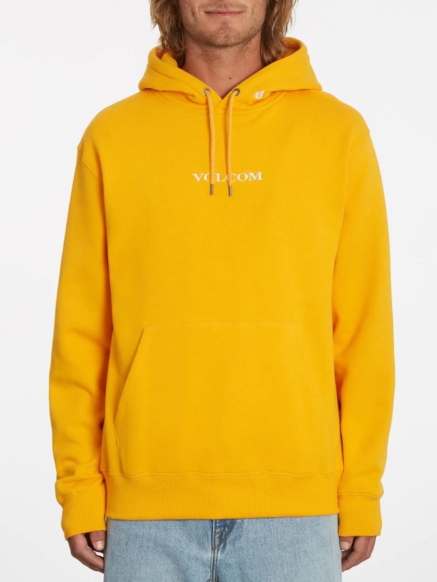 La sudadera con capucha para hombre Stone de Volcom en amarillo (Sunburst) ha sido confeccionada con tejido de forro polar mezcla de algodón (80%) y poliéster (20%) con fibras recicladas Repreve™(290g).