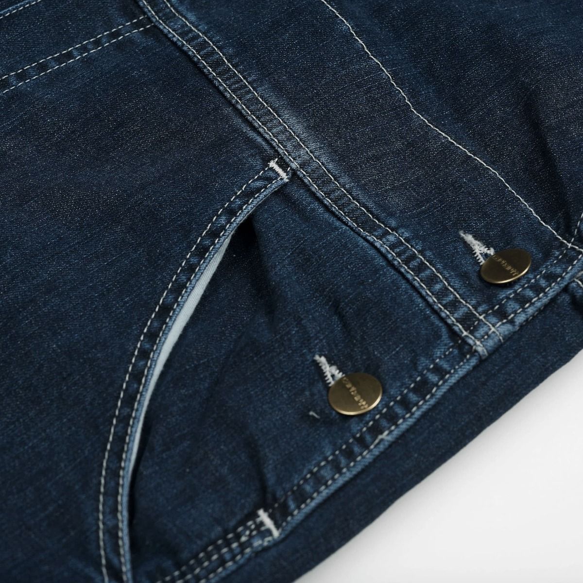 Este mono de corte estrecho con pierna ajustada cuenta con tirantes ajustables, solapa de cierre con botones en la parte delantera, amplios bolsillos laterales, posteriores y en el pecho, costuras en contraste y reforzadas en zonas de tensión, botones personalizados y el logo de Carhartt WIP bordado en el bolsillo frontal.