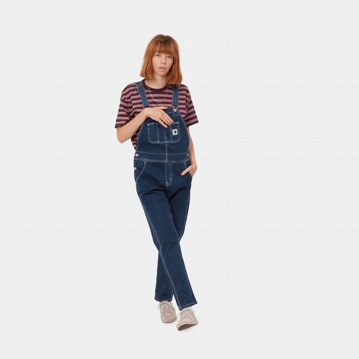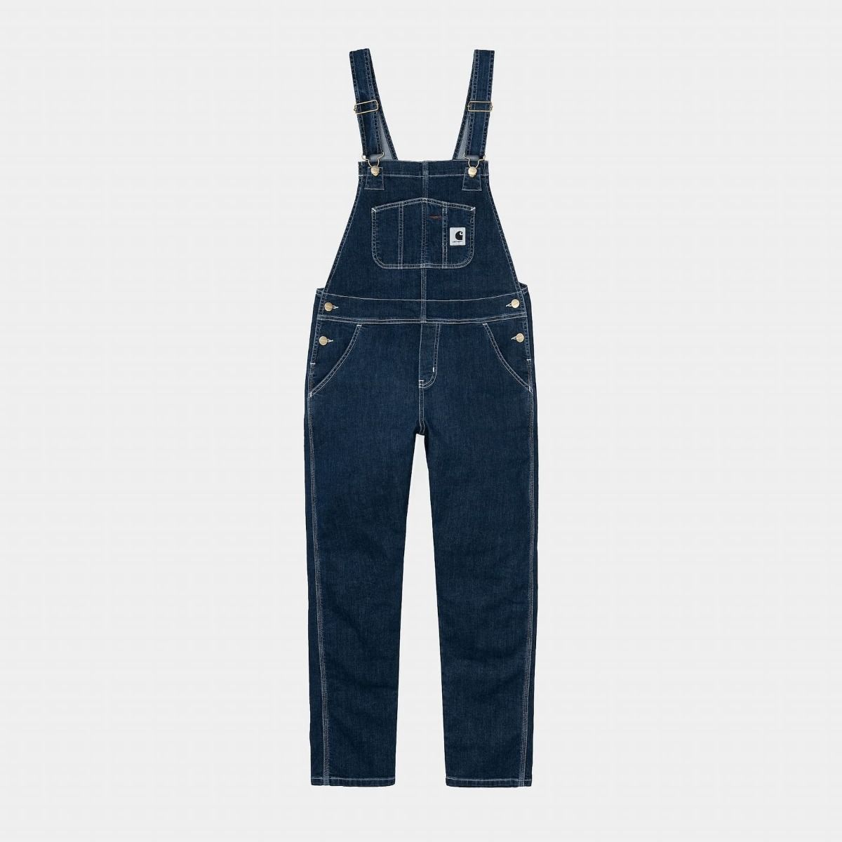 El peto para mujer W' Bib Overall azul (Blue-Stone Washed) de Carhartt WIP está confeccionado con denim de algodón elástico Gallatin.