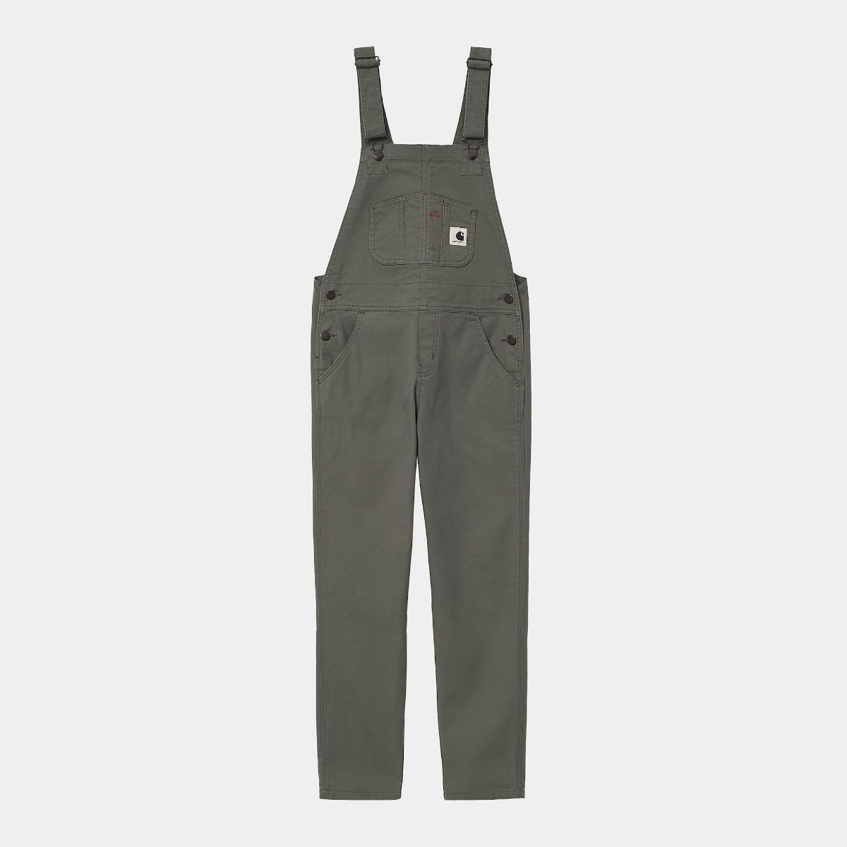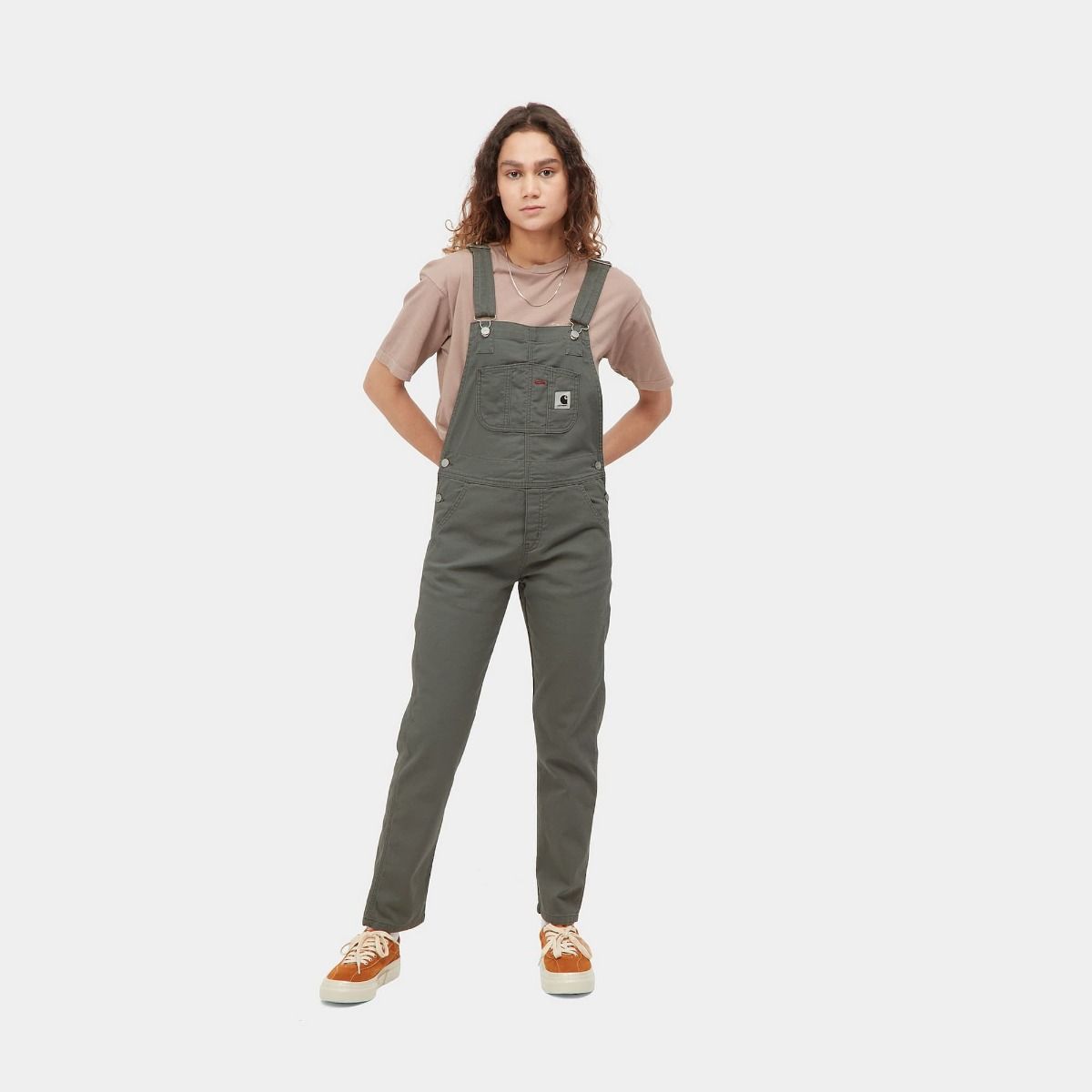 El mono para mujer W' Bib Overall verde (Thyme Rinsed) de Carhartt WIP está fabricado con 97% algodón y 3% licra.