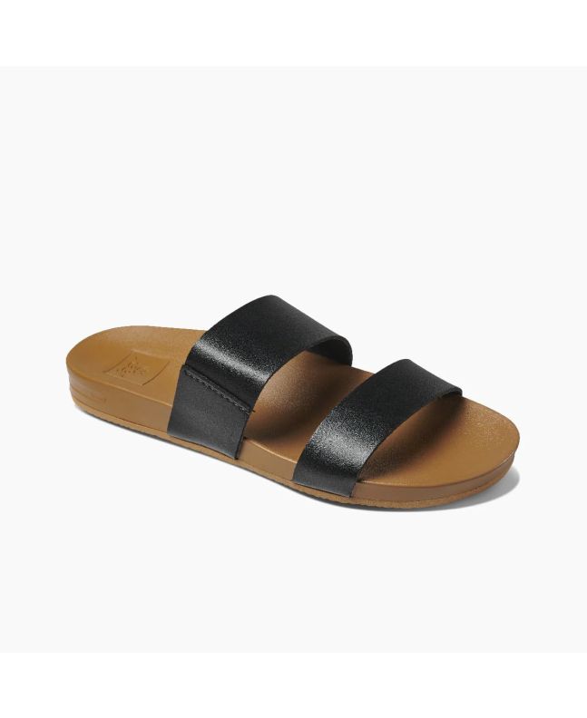 Sandalias de cuero vegano Reef Cushion Vista en color negro y beige para mujer