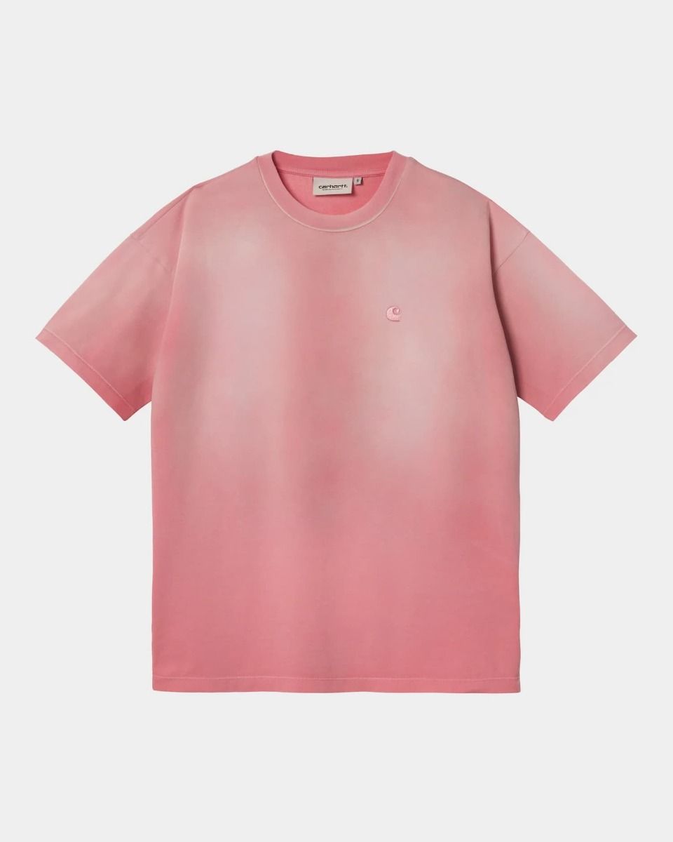 La camiseta de manga corta para mujer Sol en rosa (Rothko Pink) de Carhartt WIP está confeccionada con 100% algodón orgánico (150g/m2) en tejido desteñido al sol.