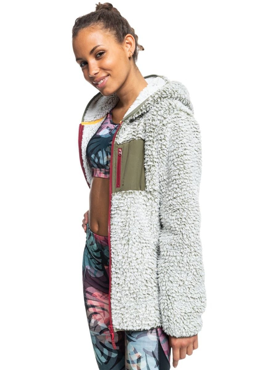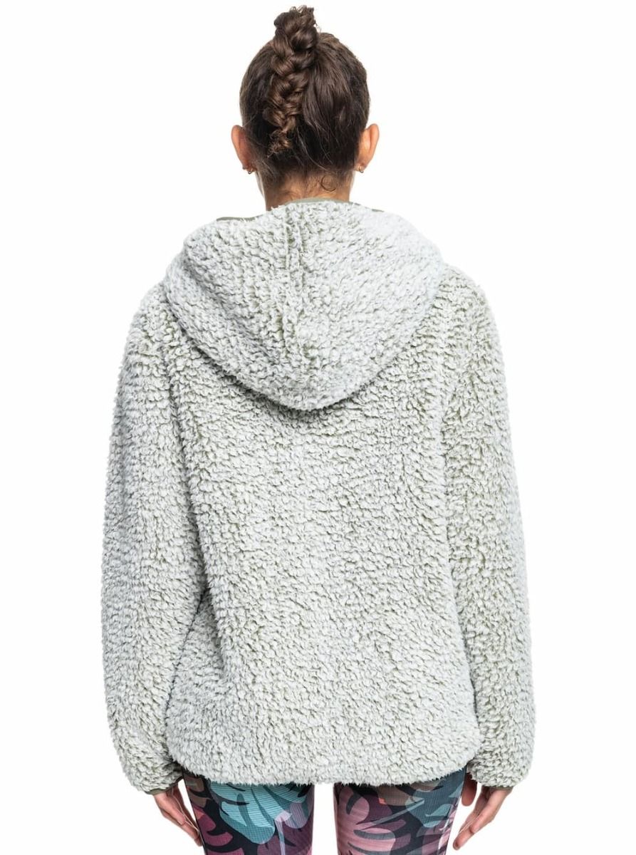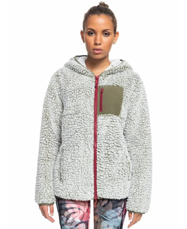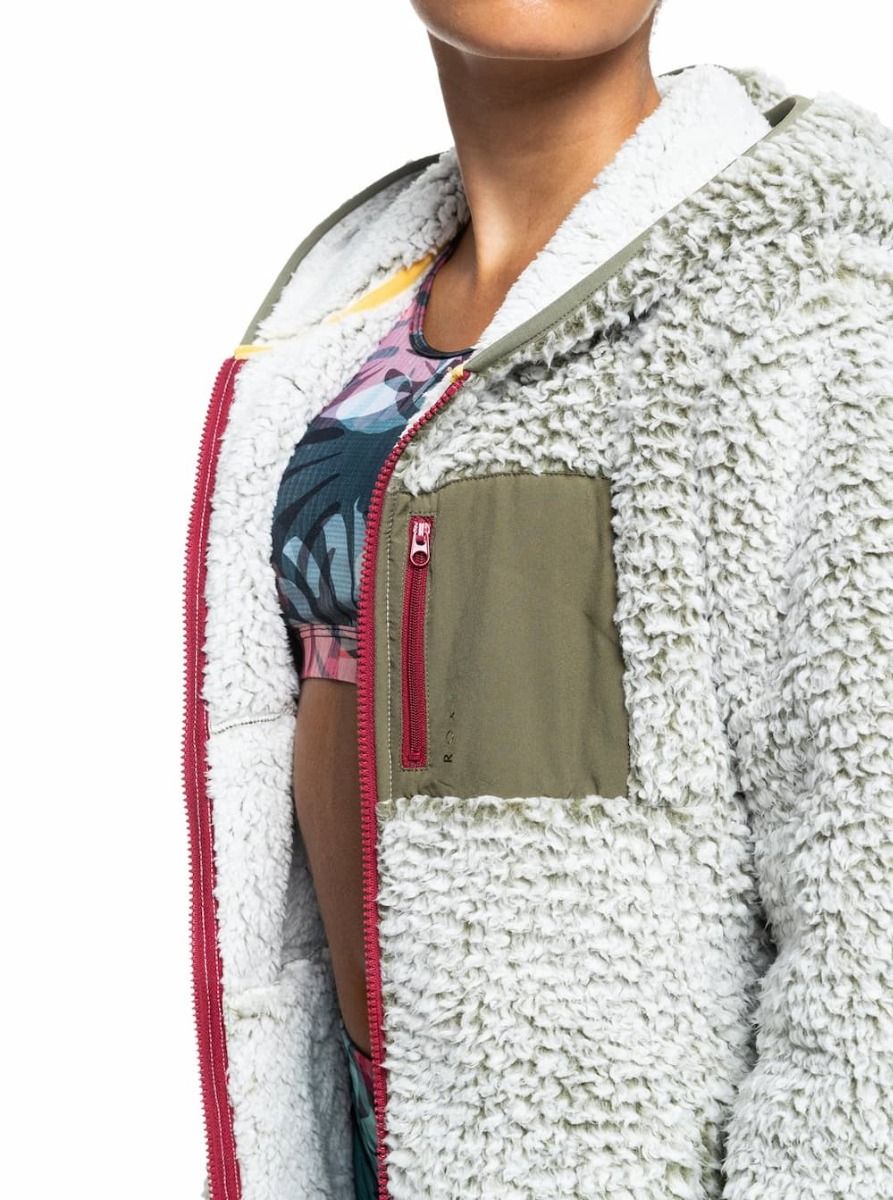 Polar de Sherpa con capucha y cremallera Roxy Want It Back en color verde oliva para mujer