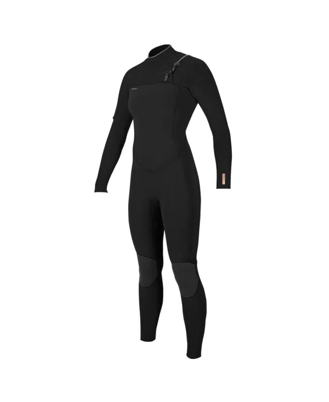 Traje de neopreno con cremallera en el pecho O'Neill Hyperfreak 5/4mm Plus en color negro para mujer