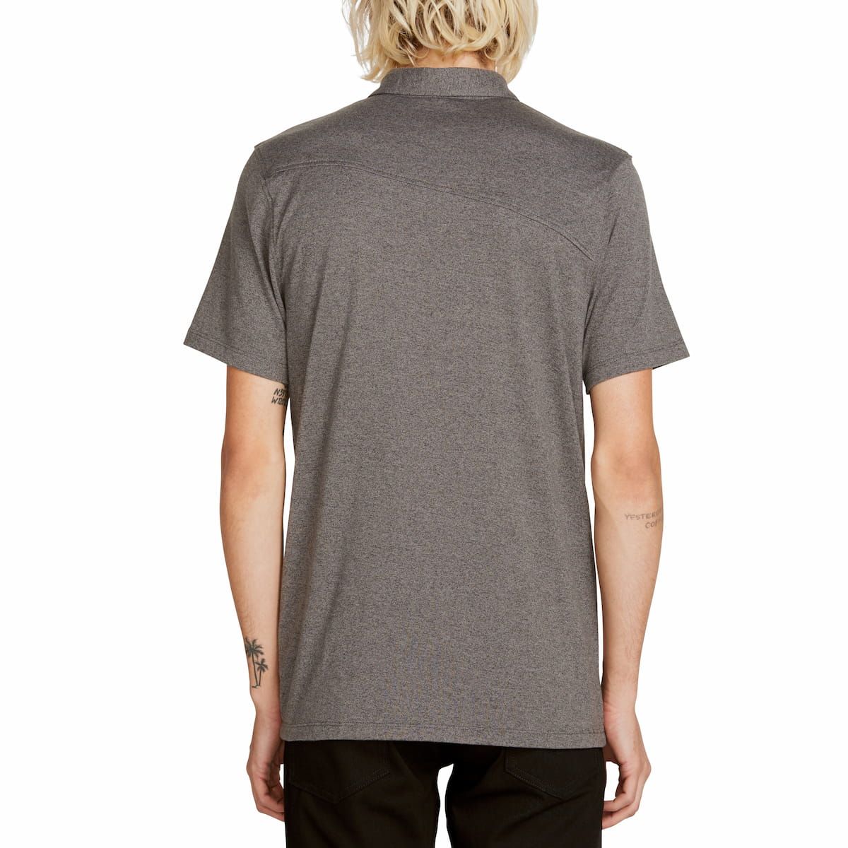 Esta camiseta polo gris de corte moderno cuenta con manga corta, cuello polo con cierre de 3 botones, cada uno con el distintivo logotipo de Volcom, y un sutil bordado tonal Stone en el lado izquierdo del pecho.