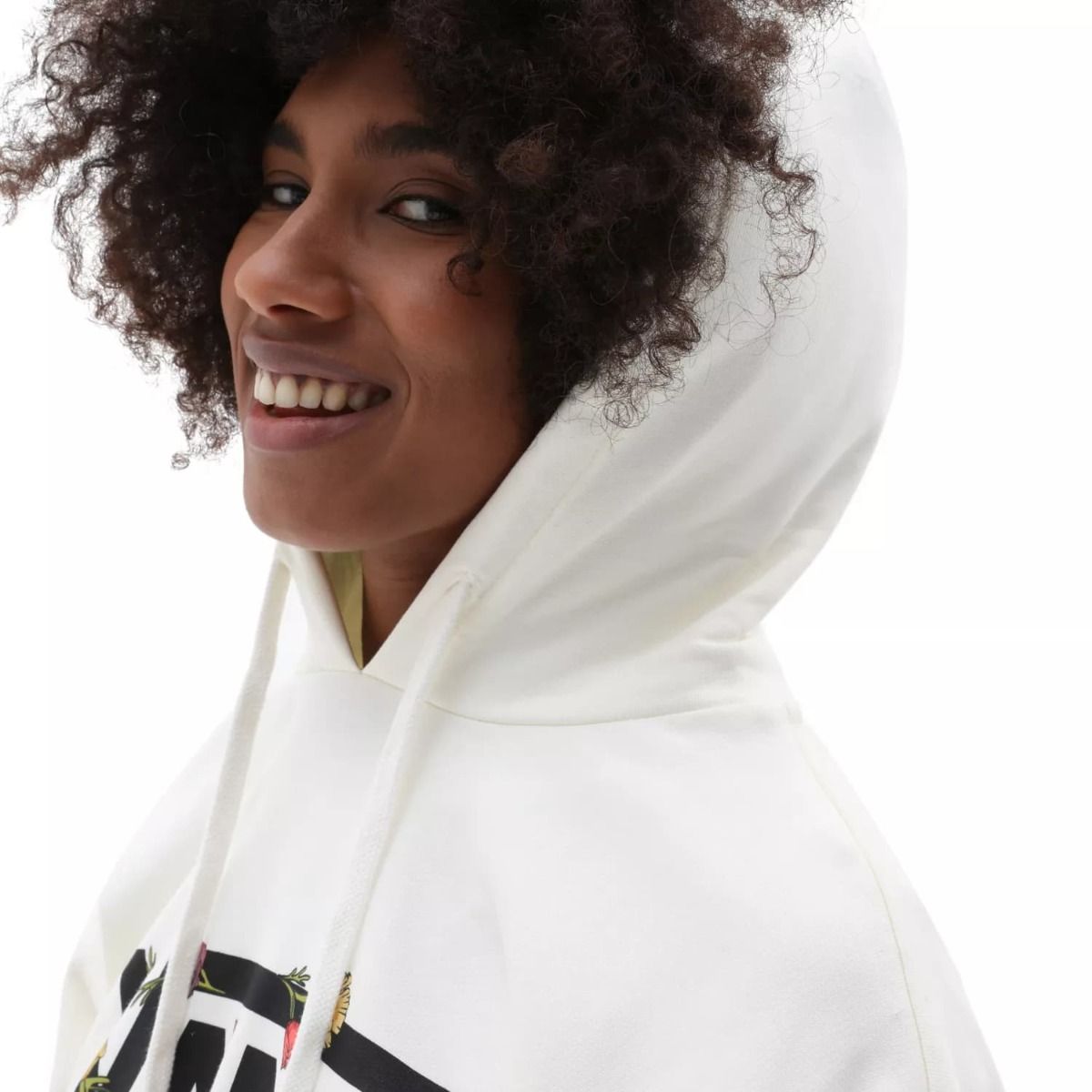 La sudadera con capucha para mujer Wyld Tangle Poppy BFF en blanco con detalles florales (Ditsy Poppy Floral Marshmallow) de Vans ha sido confeccionada con 100% algodón (300gms).