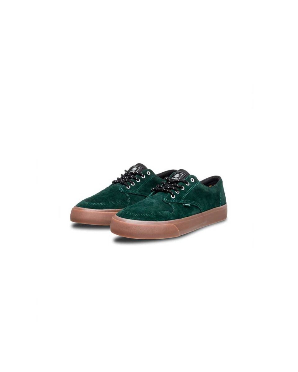 Las zapatillas para chico Y Topaz C3 en color verde (Green Gables) de Element están fabricadas con cuero y ante con suela exterior de goma reciclada.