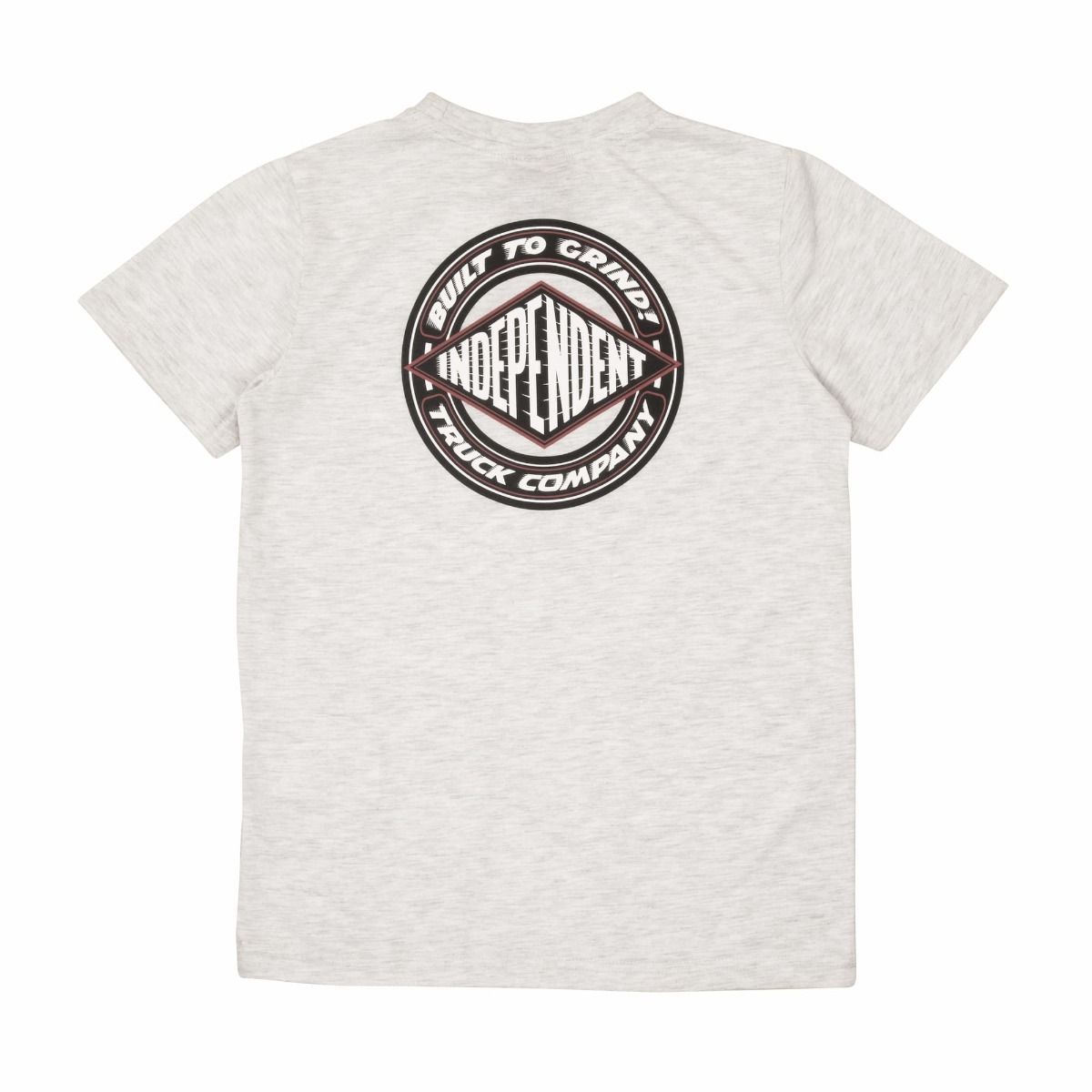 Esta cómoda camiseta de corte normal cuenta con cuello redondo, manga corta y grafismo con el logo de Independent Truck Company - Built to Grind serigrafiado a mano en tinta suave en la parte delantera y en la espalda.