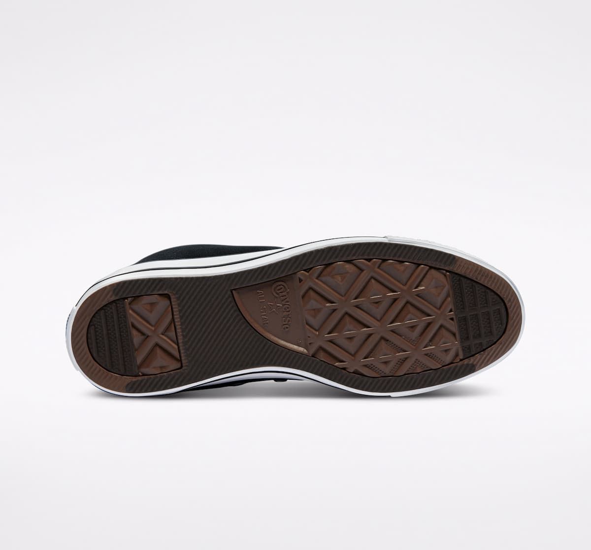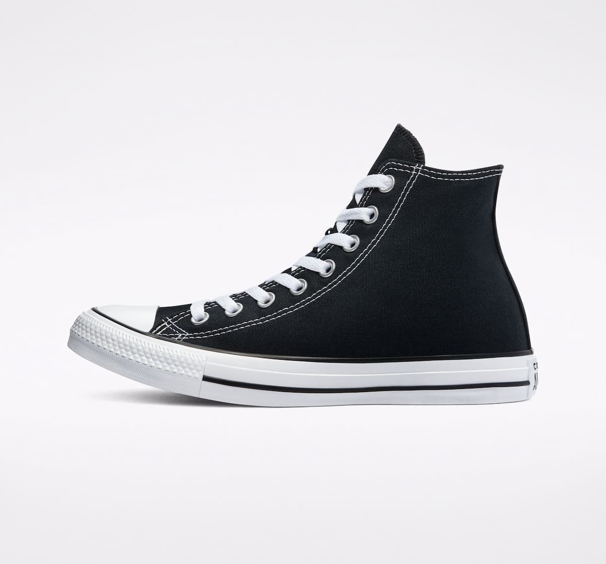 Estas icónicas zapatillas negras de caña alta, creadas en 1917, son un básico imprescindible gracias a su silueta atemporal, el inconfundible parche del tobillo con la estrella de Converse y su suela de goma vulcanizada.
