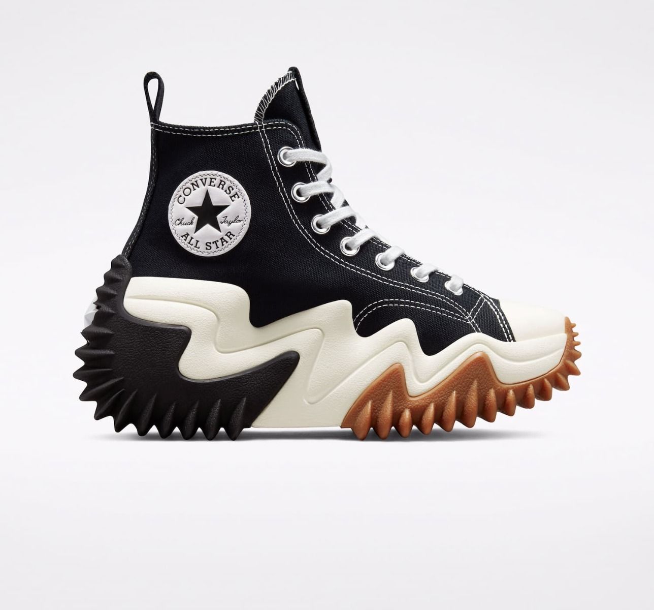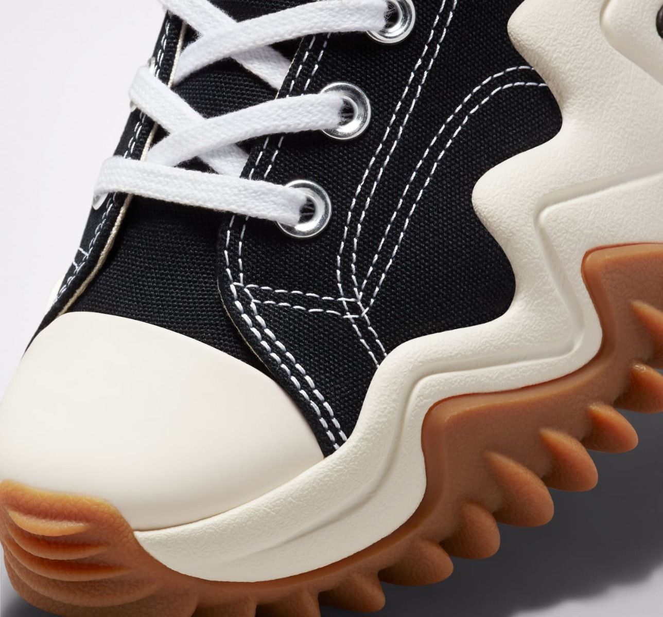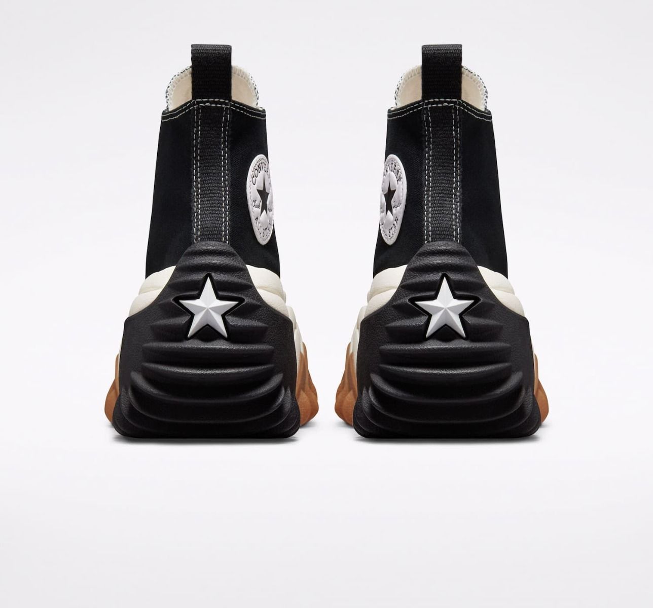 Las zapatillas Converse Run Star Motion están disponibles en color negro con plataforma blanca, negra y goma miel (Black/White/Gum Honey).
