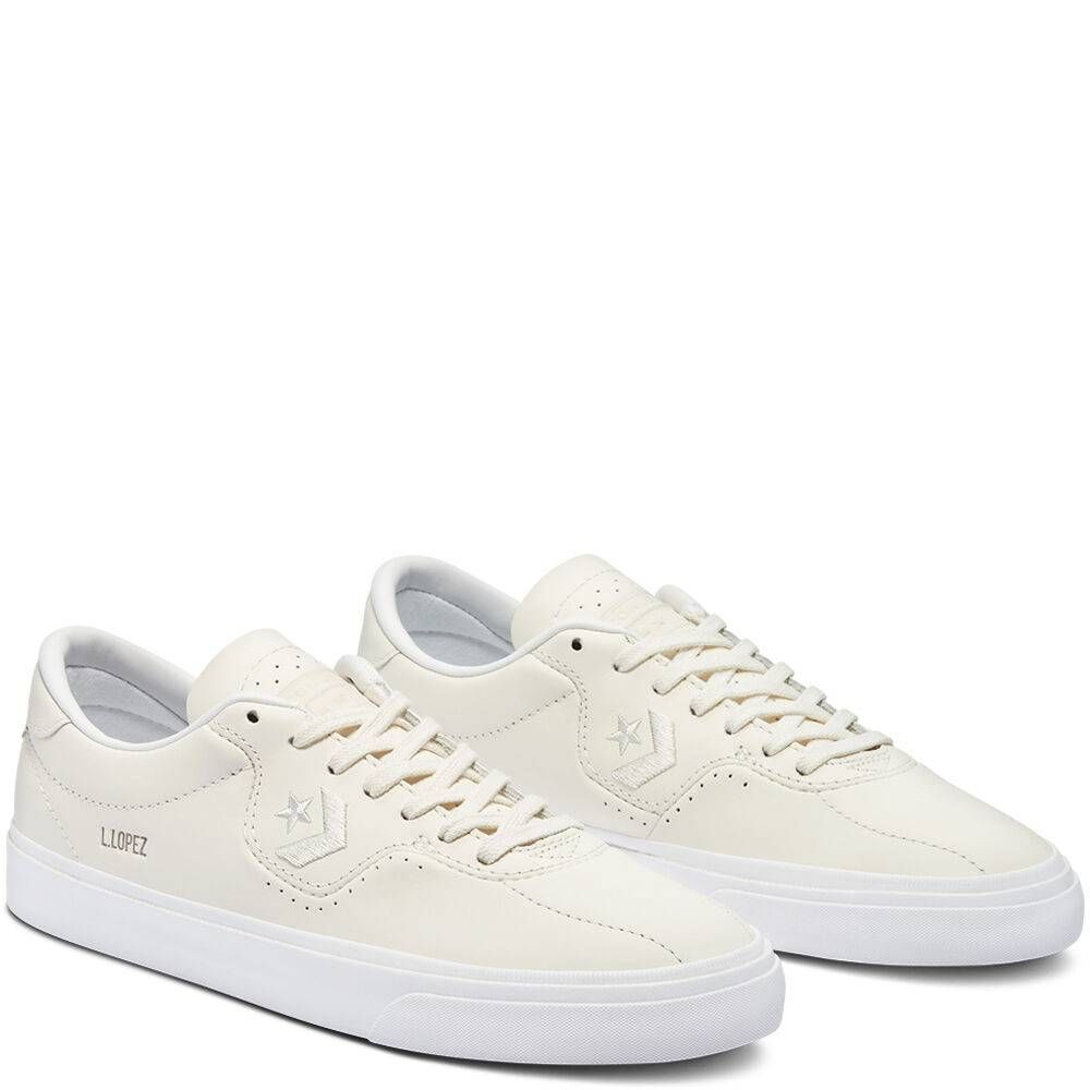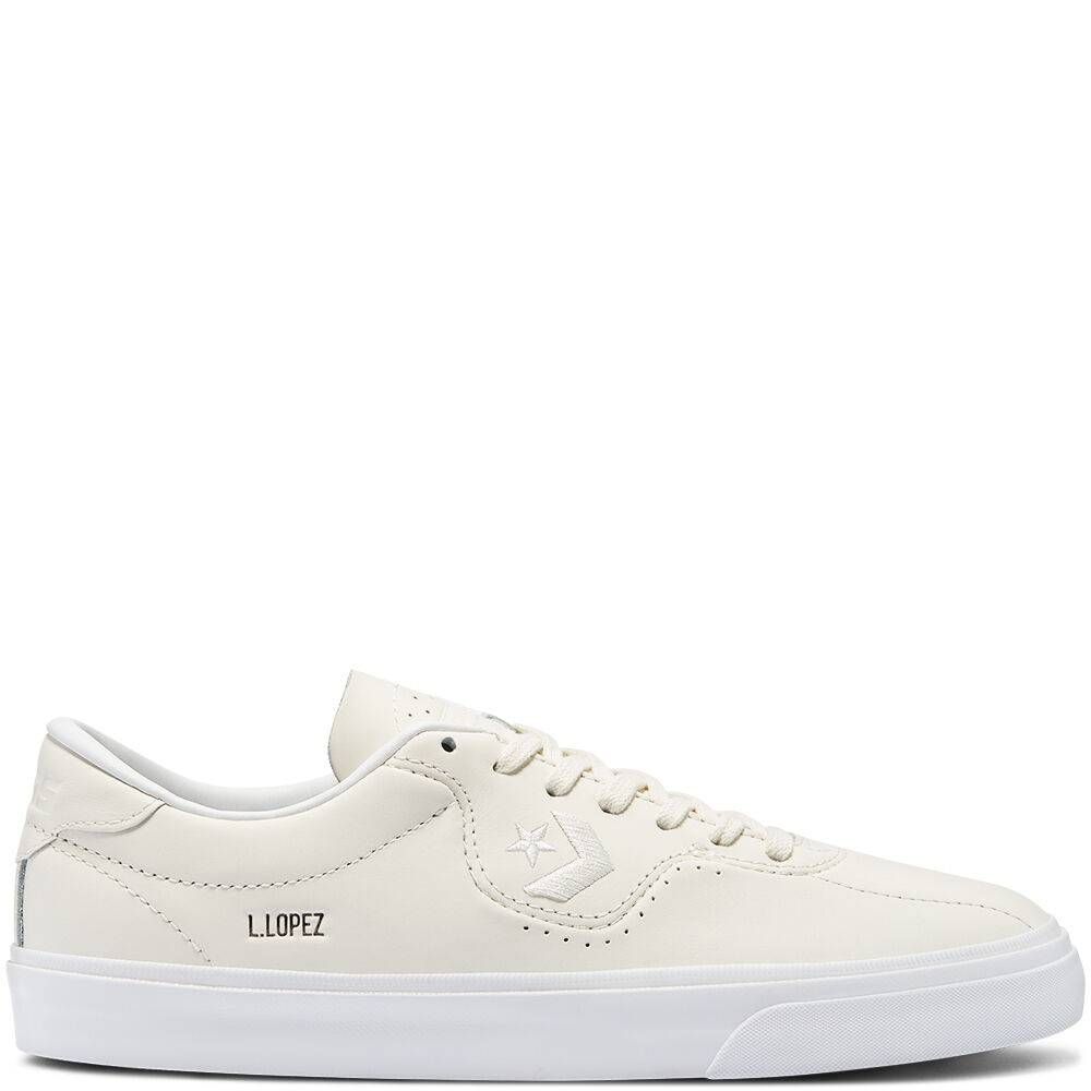 Las zapatillas de skate Louie Lopez Pro Low Top de Converse en beige con la suela blanca están confeccionadas con cuero.