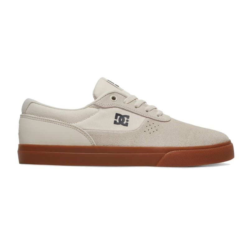 Las zapatillas para hombre Switch beige tienen la etiqueta de garantía de DC Shoes en la lengüeta.