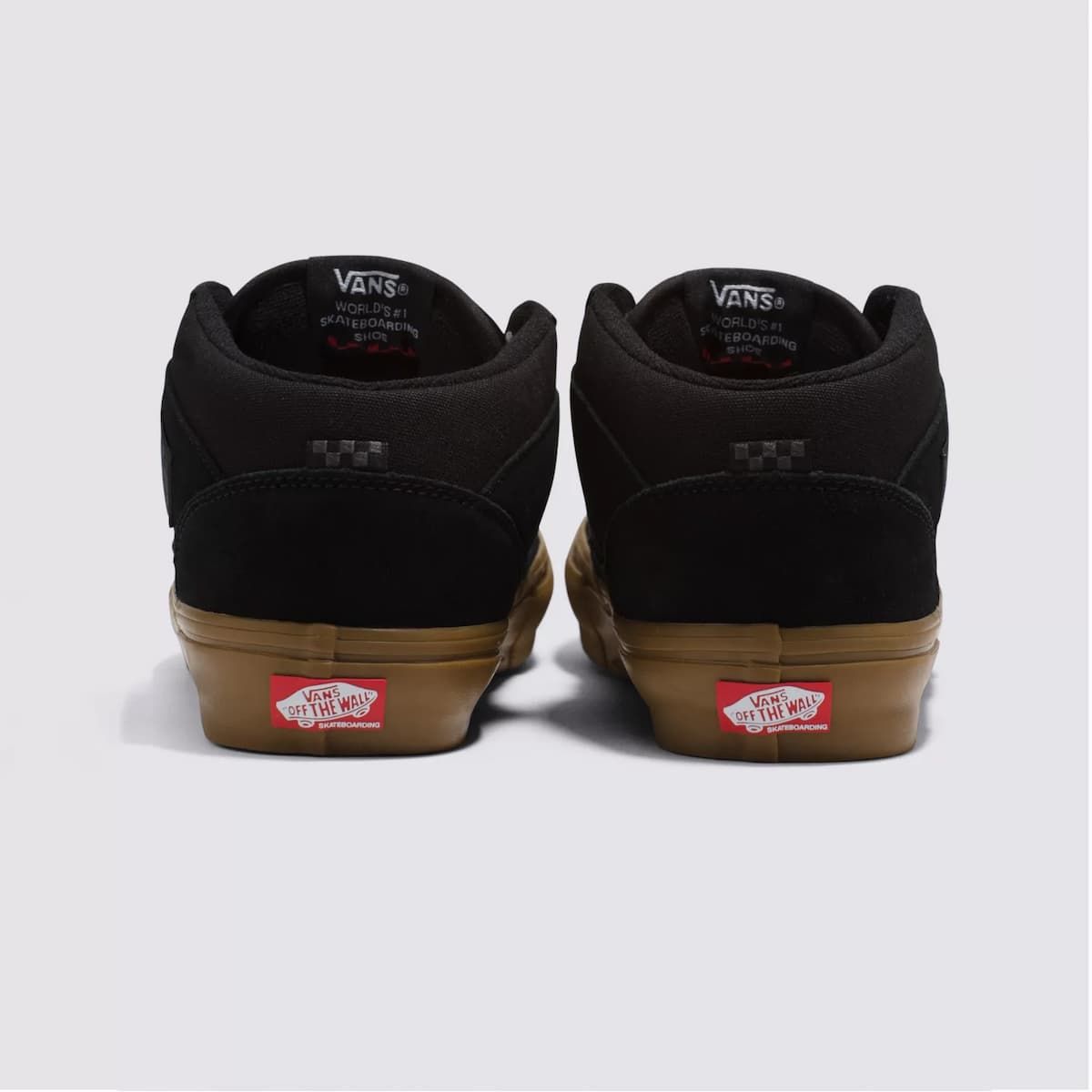 Las zapatillas de skate para hombre Half Cab en color negro y goma (Black-Gum) de Vans están confeccionadas con tejido ultra resistente de ante y lona.