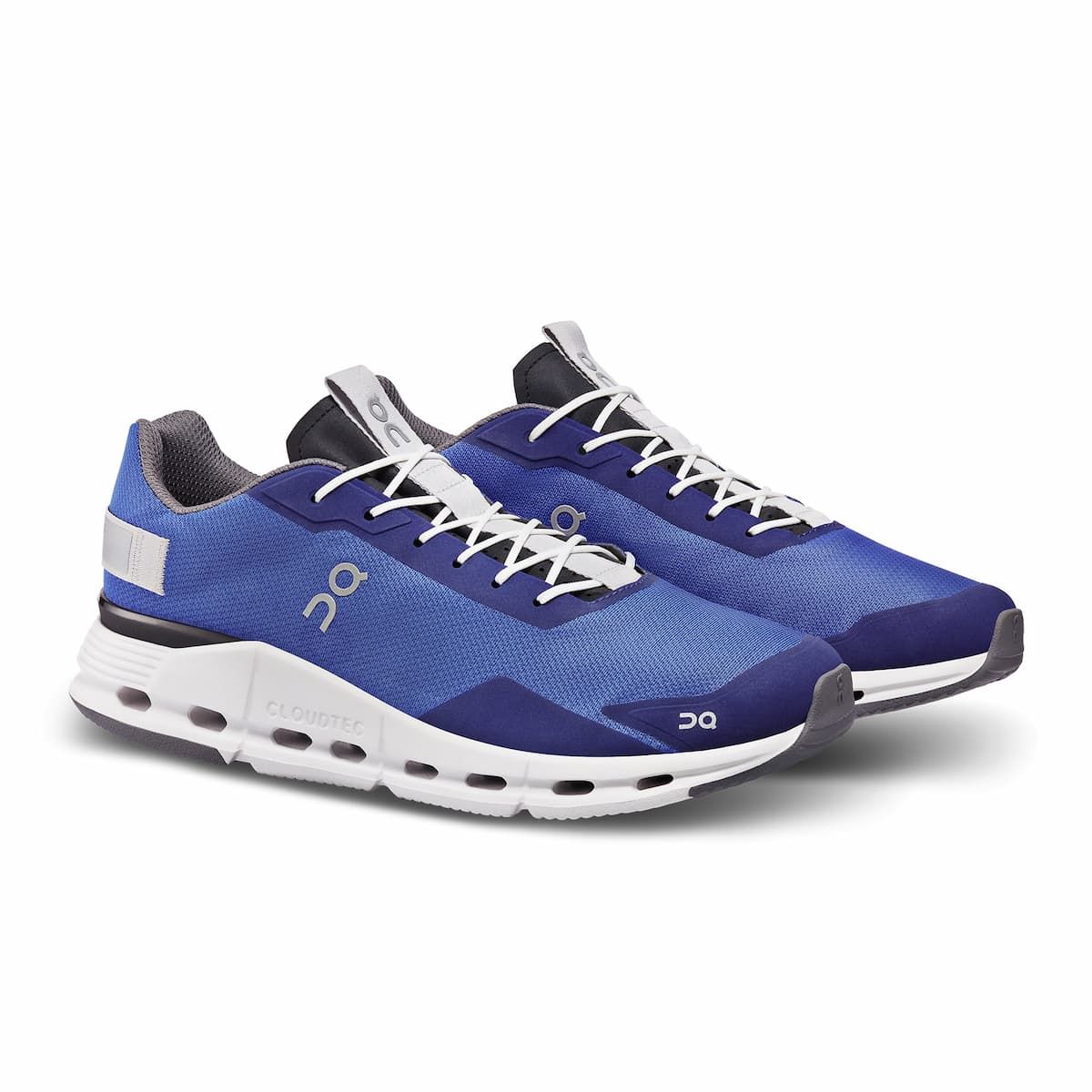 Las zapatillas para hombre Cloudnova Form en tono azul cobalto y gris (Cobalt-Mineral) de On Running combinan la tecnología de las deportivas running de alto rendimiento con la comodidad del calzado de caña baja.