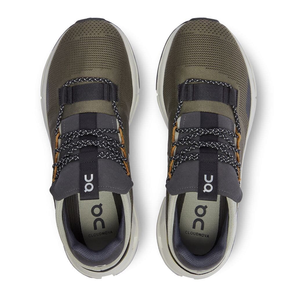 Las zapatillas para hombre Cloudnova en tono verde militar y gris oscuro (Ivy-Eclipse) de On Running son una combinación impecable entre la tecnología de las deportivas running de alto rendimiento y un nuevo diseño urbano para una comodidad reactiva sin renunciar al estilo.