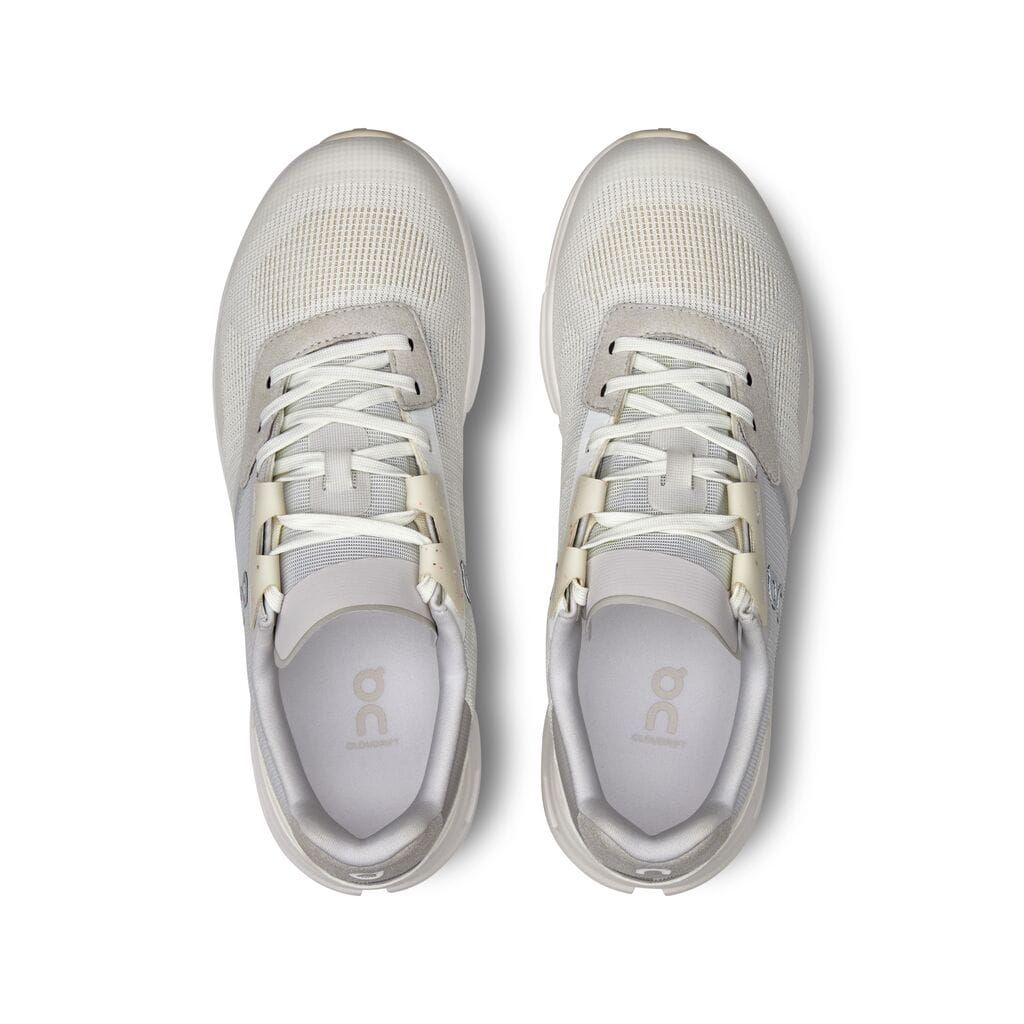 Las zapatillas de deporte para mujer Cloudrift en tono blanco sin teñir y gris (Undyed White-Frost) de On Running combinan la avanzada tecnología de las deportivas running de alto rendimiento con la comodidad que necesitas para largas caminatas o extensas jornadas de pie.