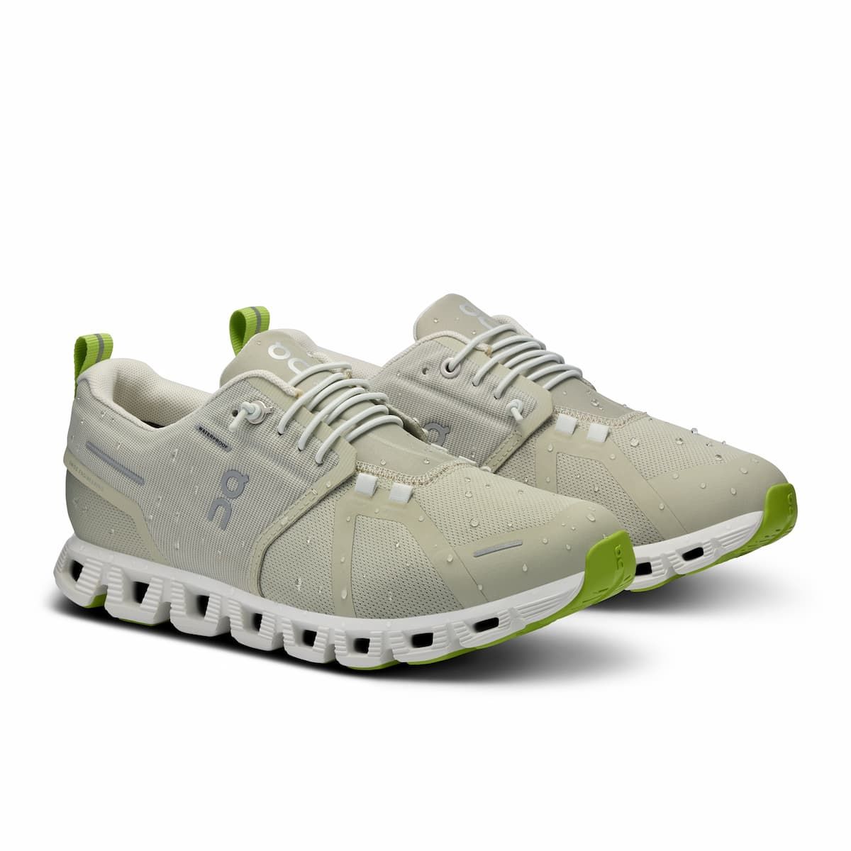 Zapatillas On Running Cloud 5 Waterproof en color verde y blanco para mujer | Chalk - Ice