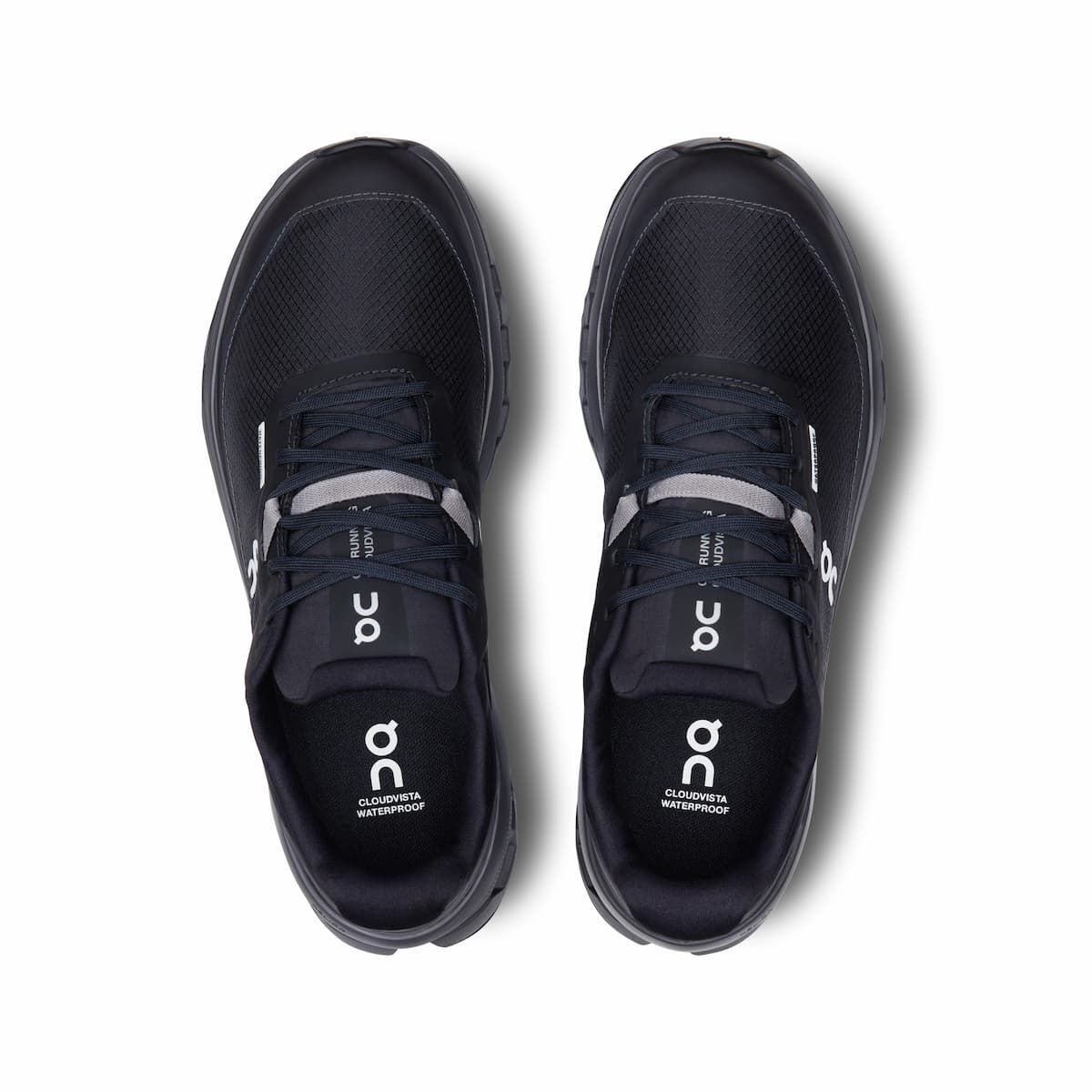 Zapatillas de trail running On Cloudvista 2 Waterproof en color negro y gris eclipse para mujer | Black-Eclipse