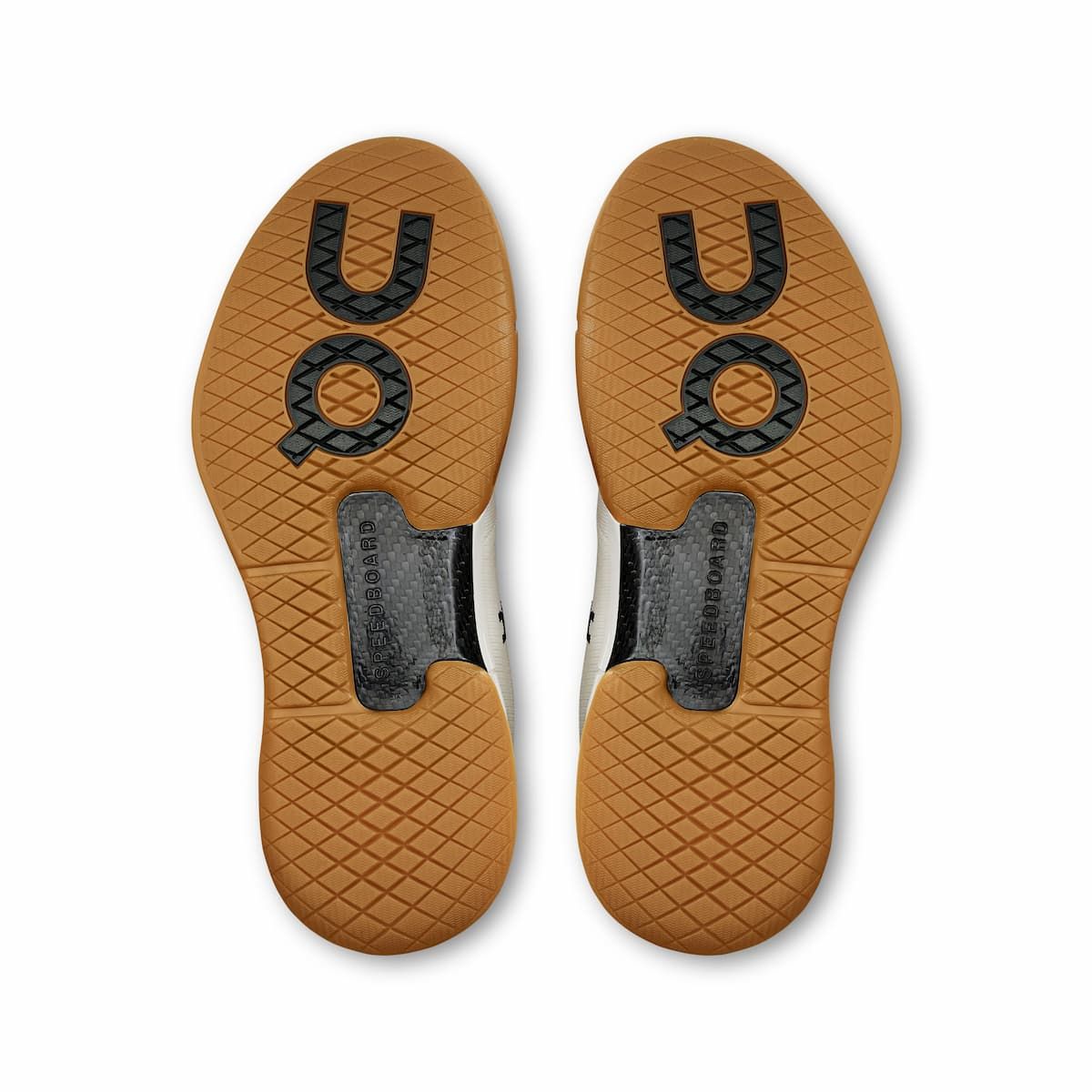 El acabado en tono marfil (Ivory-Ivory) combina elegancia con carácter técnico. La parte trasera sobreelevada, los detalles grabados y los logotipos On y R reforzados completan un look profesional con una ejecución minimalista.
