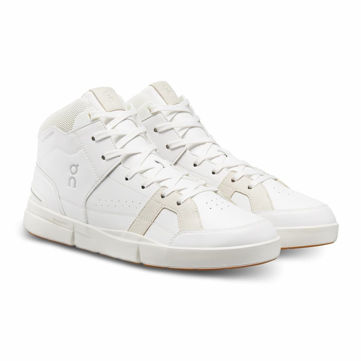 Las zapatillas The Roger Clubhouse Mid blancas con detalles en beige para hombre tienen el sello de garantía On Running y están aprobadas por el maestro del tenis Roger Federer.