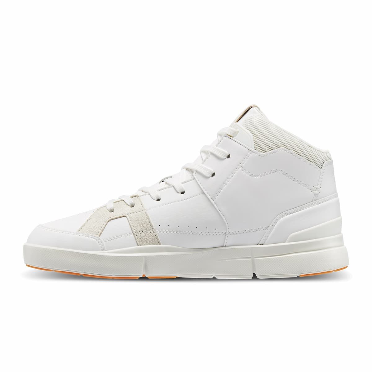Las zapatillas de media caña para hombre The Roger Clubhouse Mid Top en blanco y beige (White-Sand) de On Running combinan sin esfuerzo la calidad técnica de la ingeniería suiza para un confort de alto rendimiento con un diseño nostálgico inspirado en las zapatillas de tenis de los años 90.
