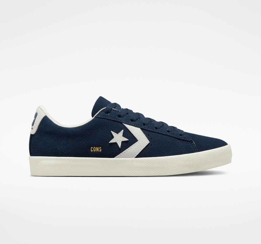 Las zapatillas de skate para hombre CONS PL Vulc Pro Suede en azul marino y blanco garza (Obsidian-Egret-Obsidian) de Converse están confeccionadas con ante y caucho.
