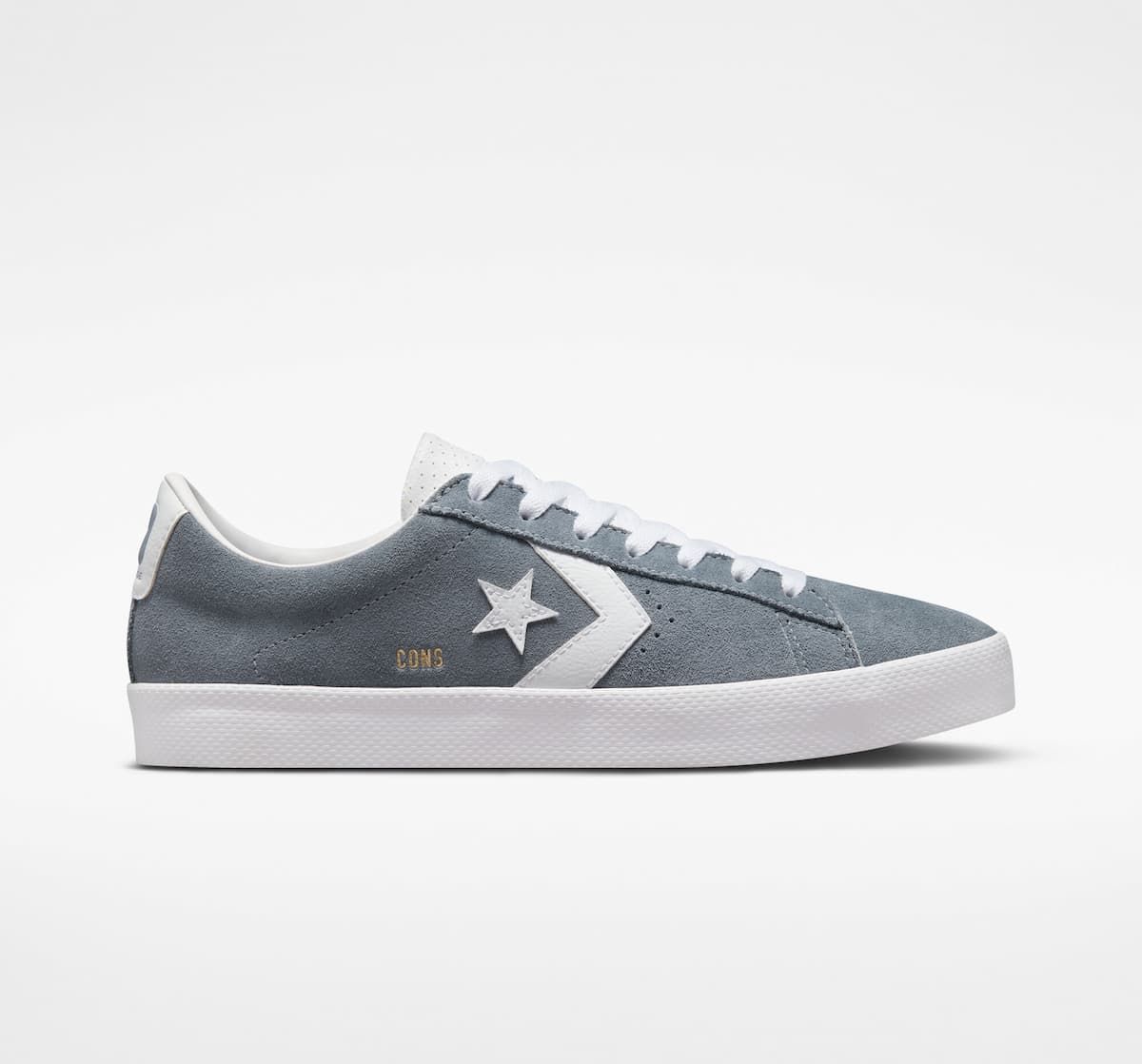 Las Converse CONS PL Vulc Pro Suede Lunar Grey-White-White cuentan con un perfil bajo para una flexibilidad máxima, cordones blancos planos para un mejor ajuste, lengüeta elástica y reforzada, amortiguación de espuma CX para mayor protección contra impactos, suela de goma de tracción para un agarre óptimo y detalles icónicos de la Pro Leather bordados.