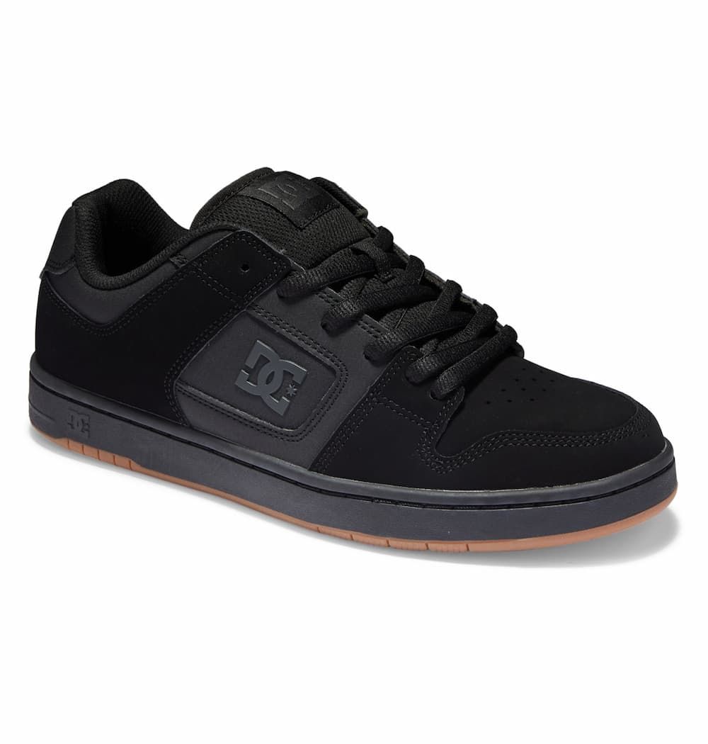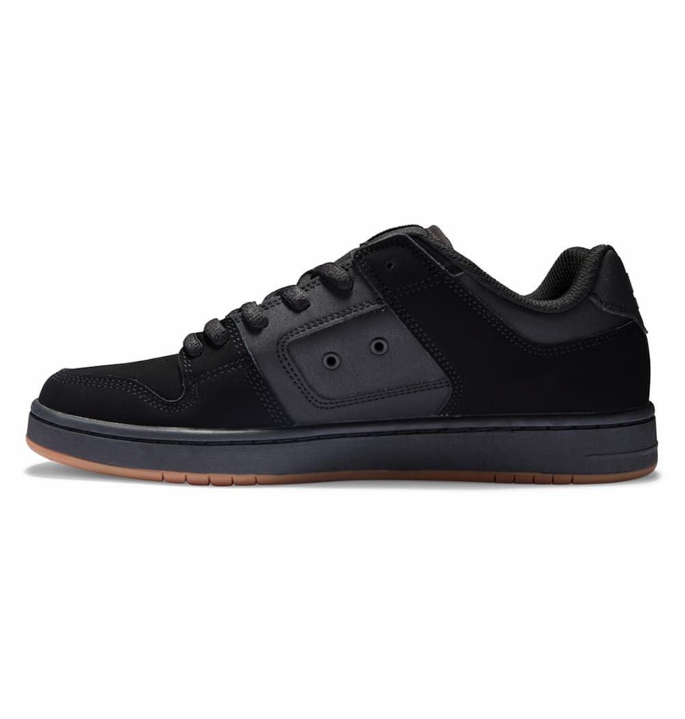 Las zapatillas de Skate para hombre Manteca 4 en negro y suela de goma (Black-Black-Gum) de DC Shoes están confeccionadas con cuero, ante y goma.